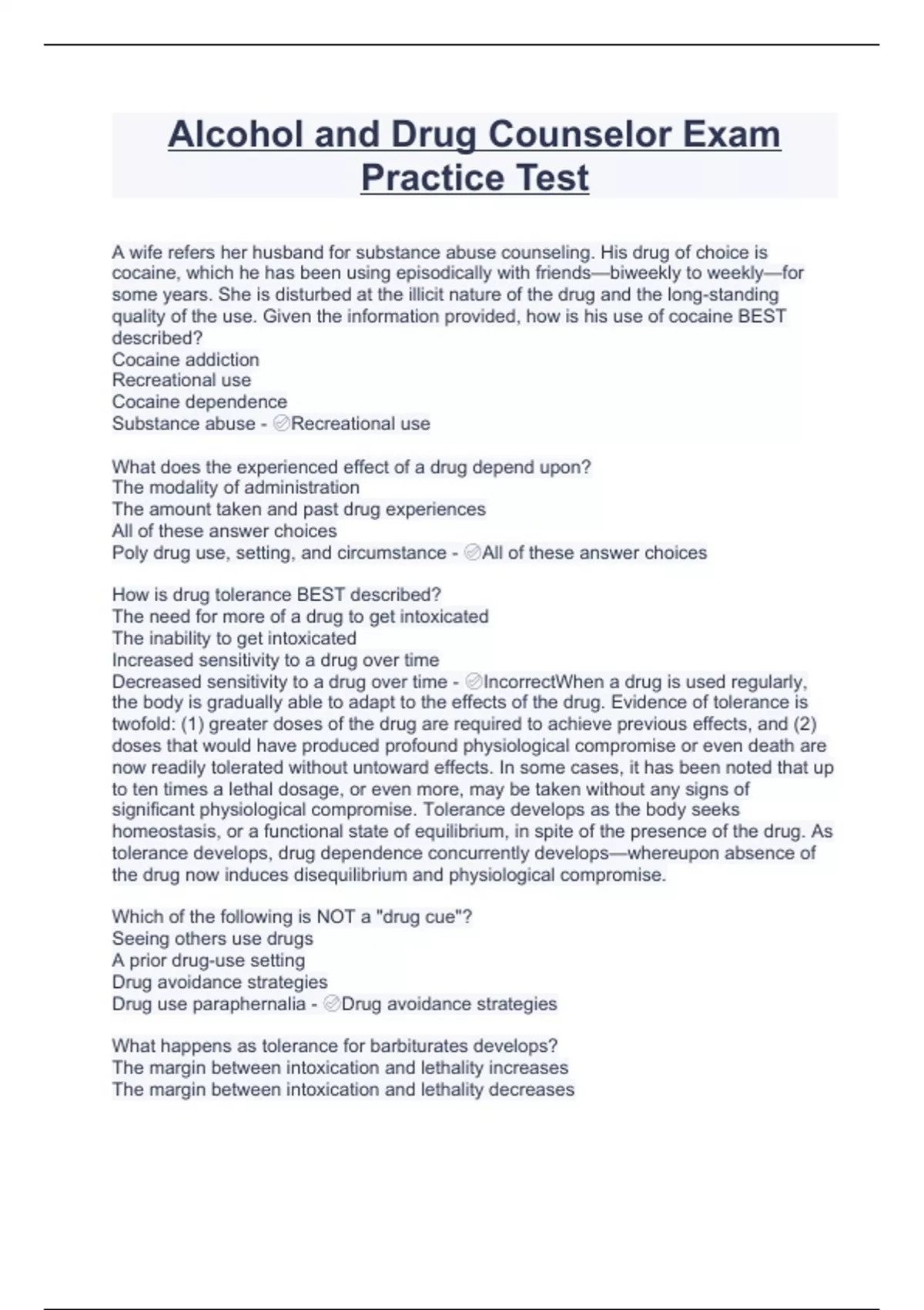 Alcohol and Drug Counselor Exam Practice Test