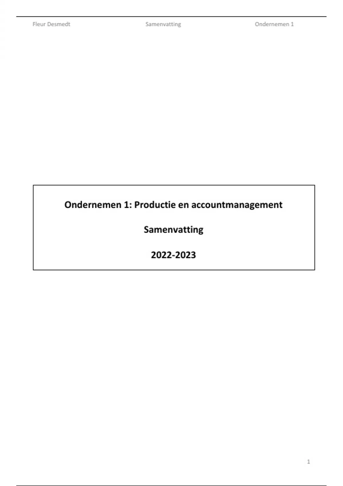 , Fleur Desmedt Samenvatting Ondernemen 1