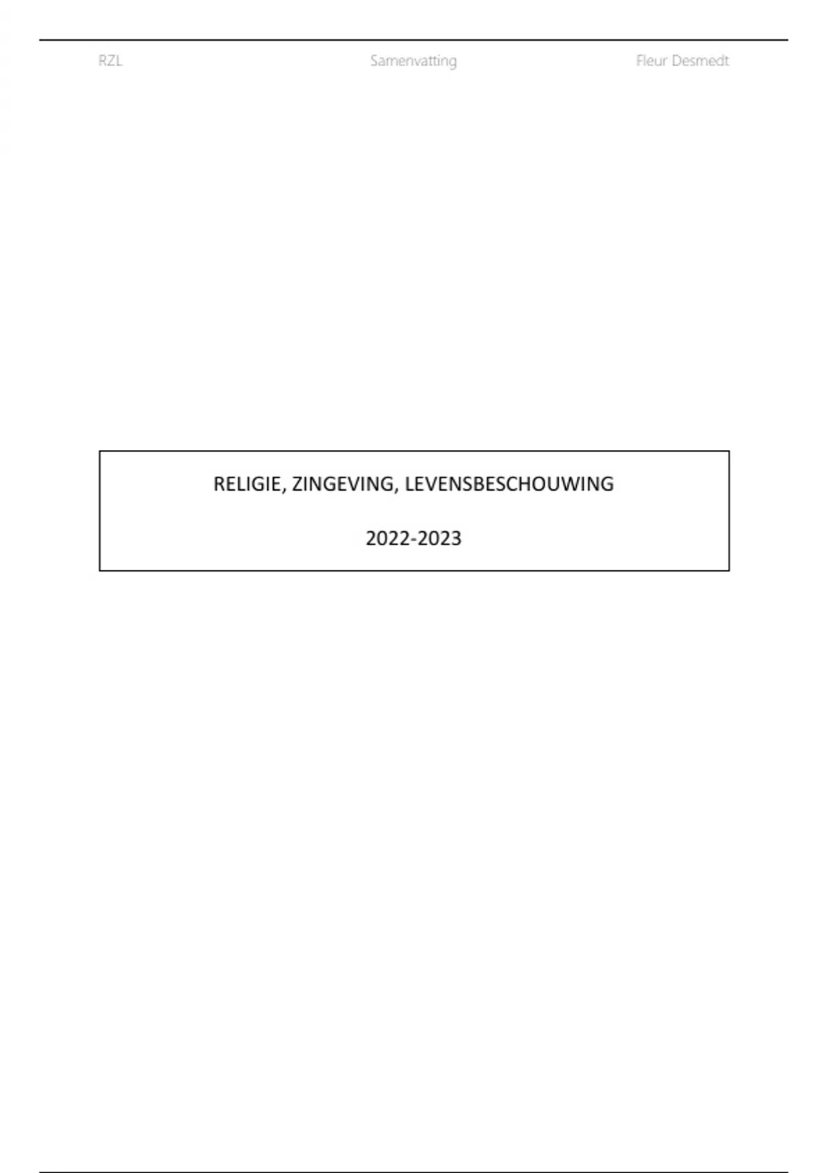 RELIGIE, ZINGEVING, LEVENSBESCHOUWING