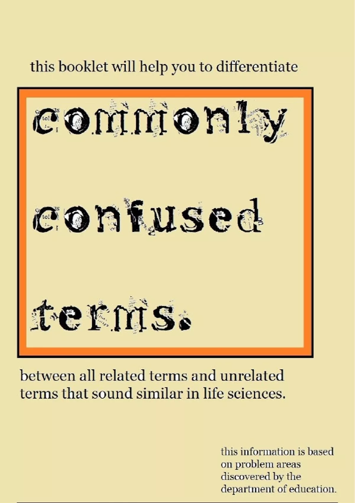 This booklet provides a list of the most commonly confused terms in grade 12 life sciences. It will help you as a grade 12 learner to differentiate between related terminologies and unrelated terms that sound similar in biology/life sciences.