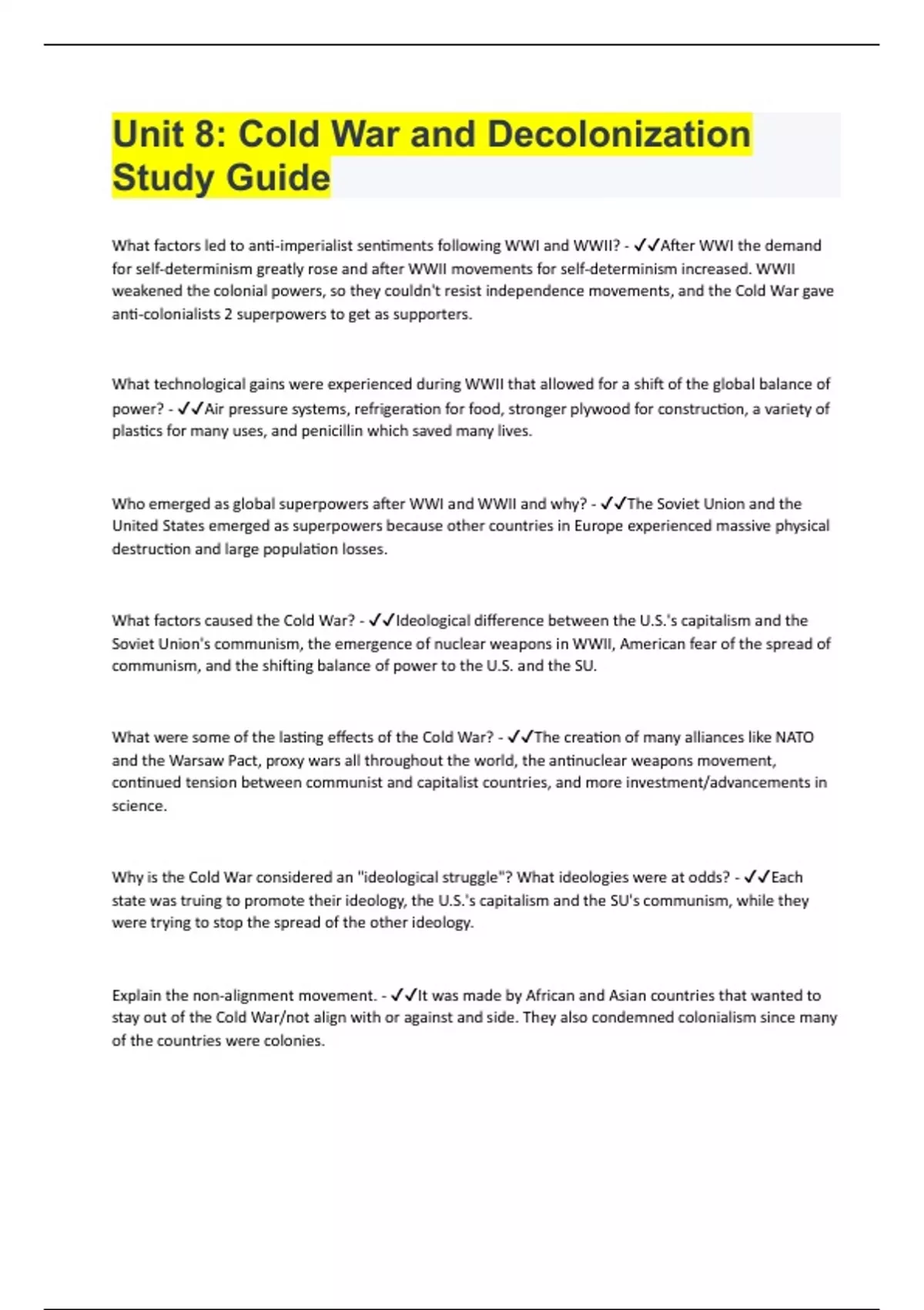 Unit 8: Cold War and Decolonization | 55 Questions and Answers (A +solution guided)