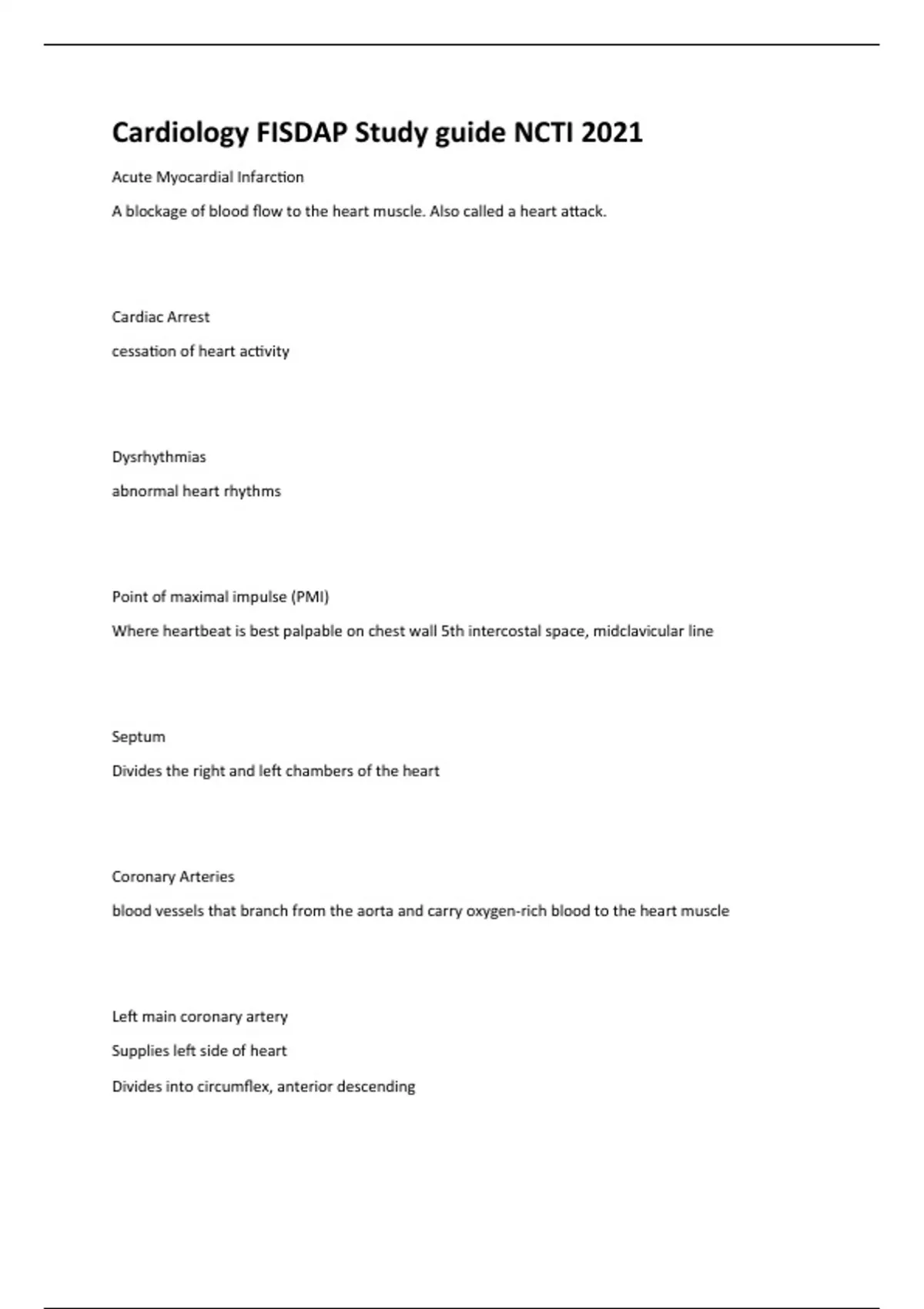 Cardiology FISDAP Study guide NCTI Questions And Answers - Grade A+