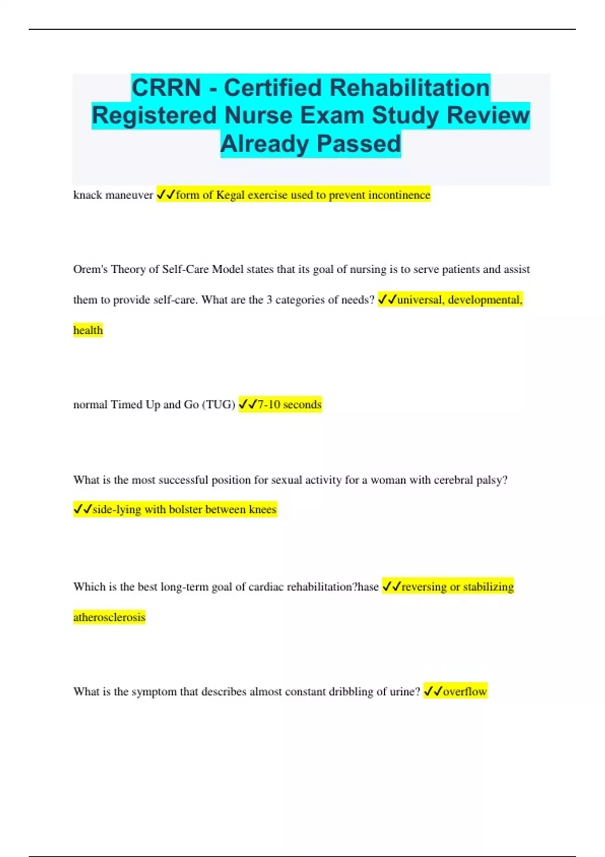 CRRN - Certified Rehabilitation Registered Nurse Exam Study Review Already Passed