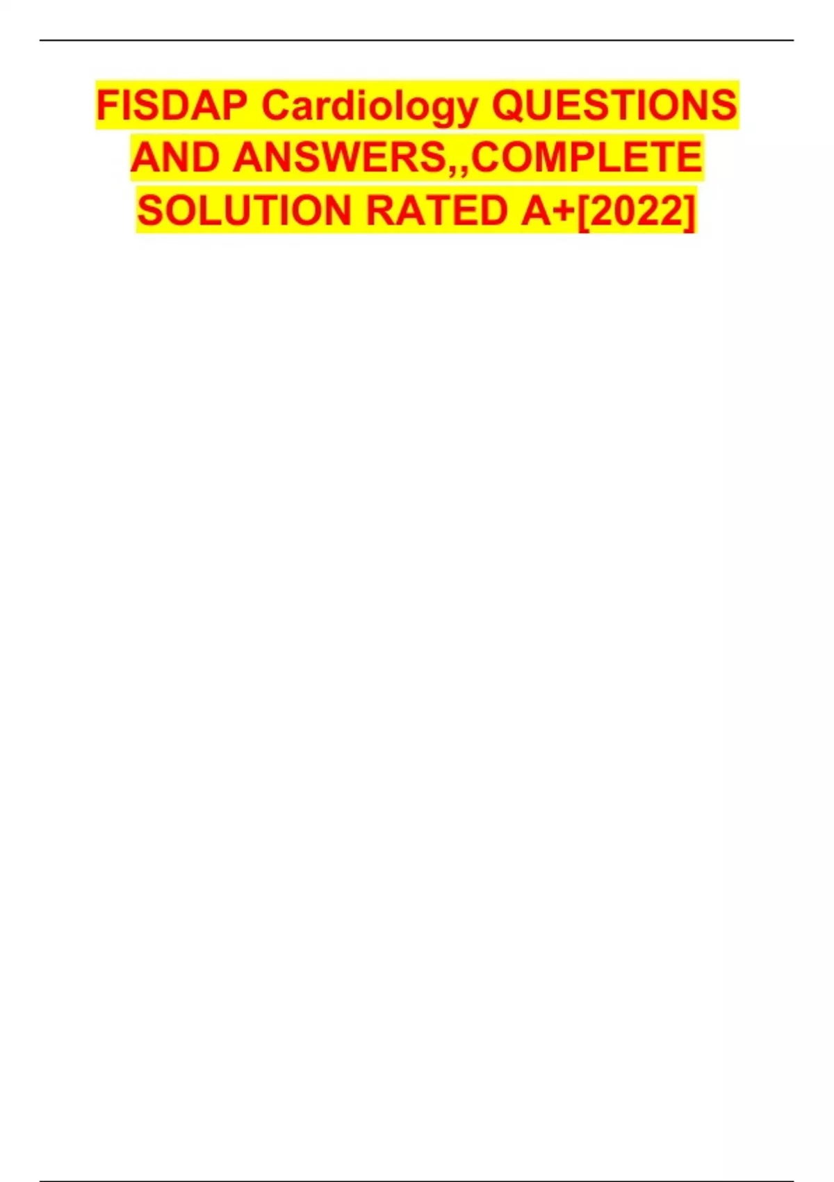 FISDAP Cardiology QUESTIONS AND ANSWERS,,COMPLETE SOLUTION RATED A+[2022]
