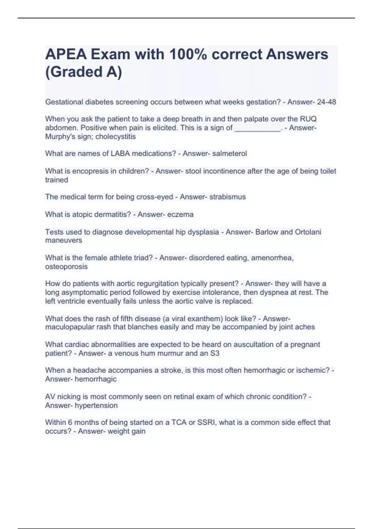 apea exam with 100 correct answers graded a