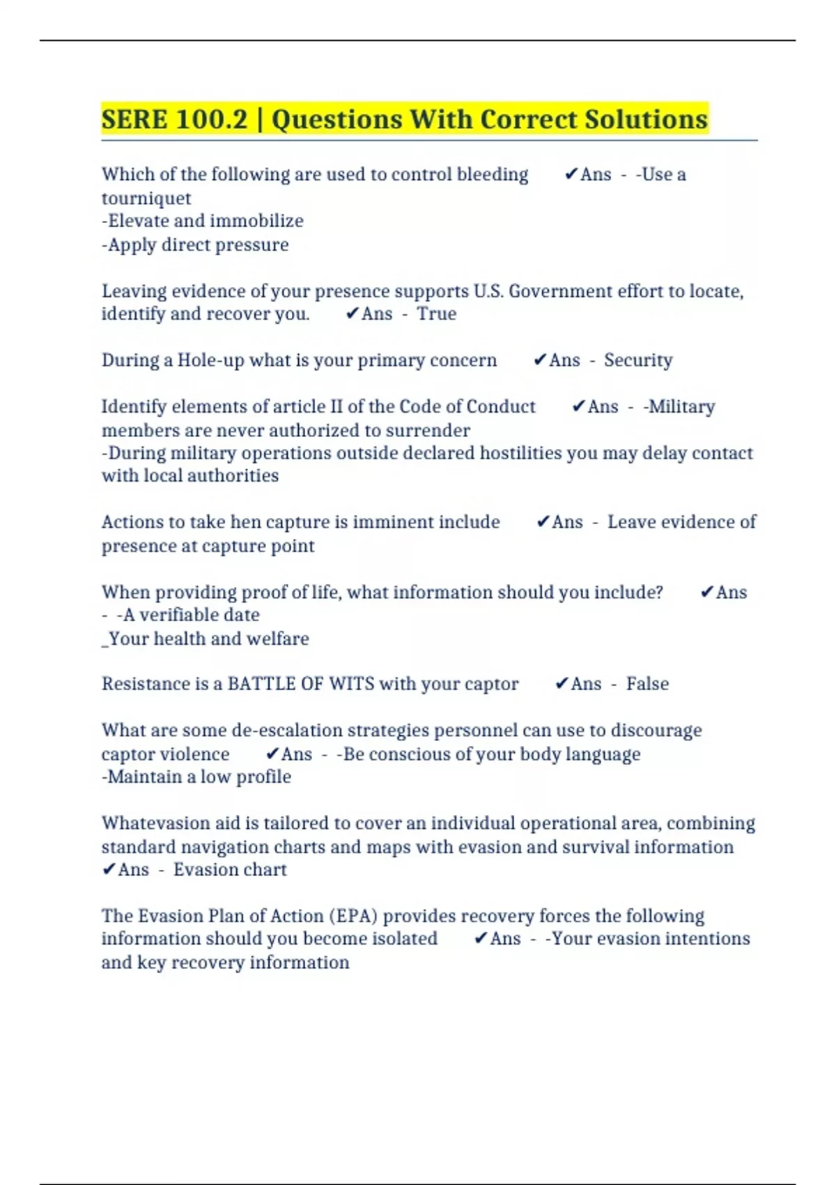 SERE 100.2 | Questions With Correct Solutions