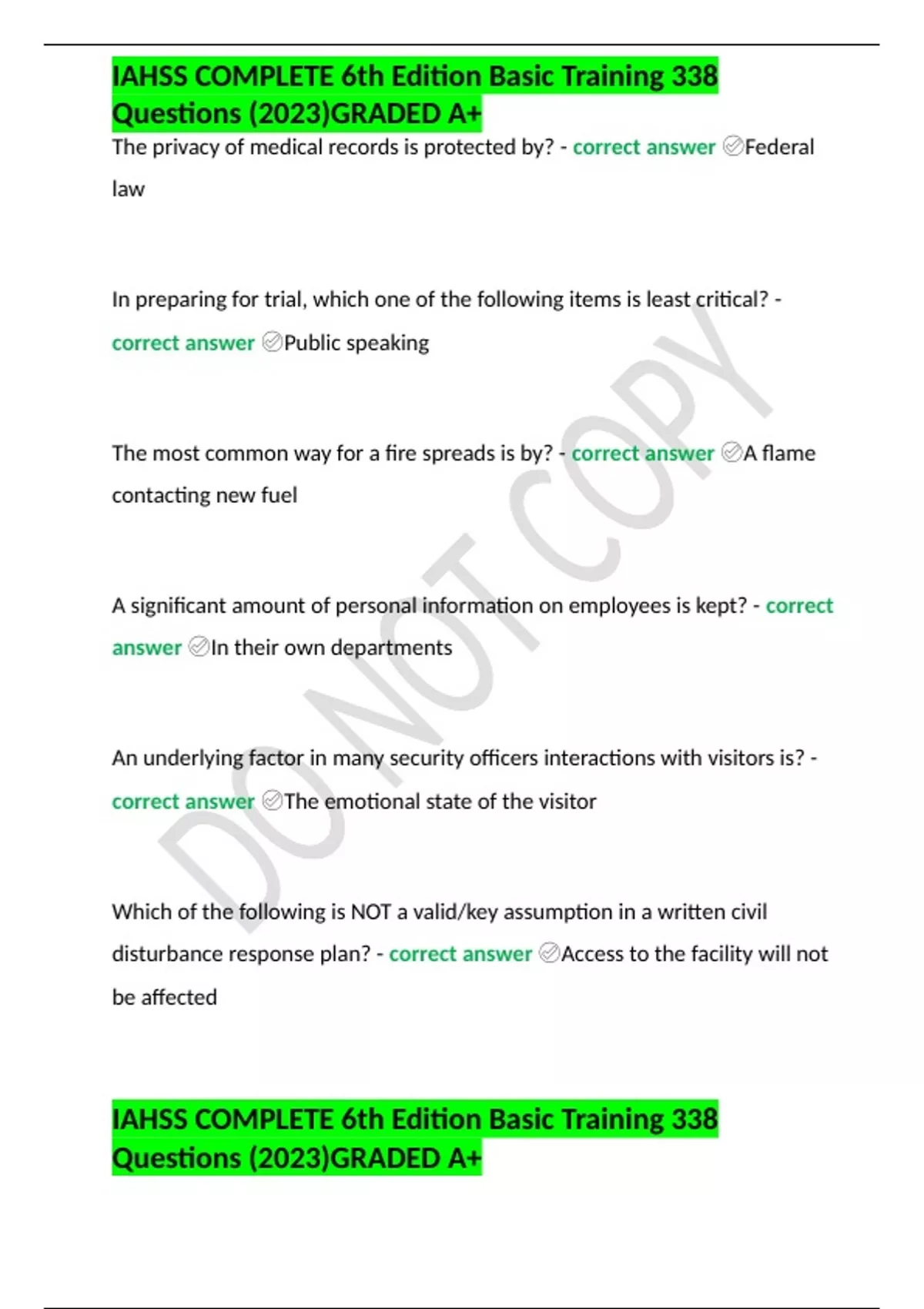 IAHSS COMPLETE 6th Edition Basic Training 338 Ques