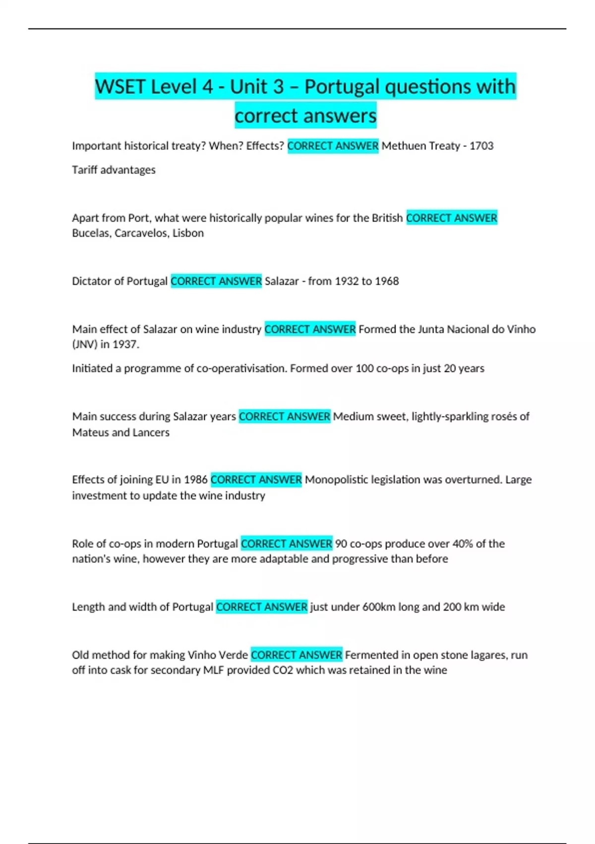 wset level 4 unit 3 – portugal questions with co