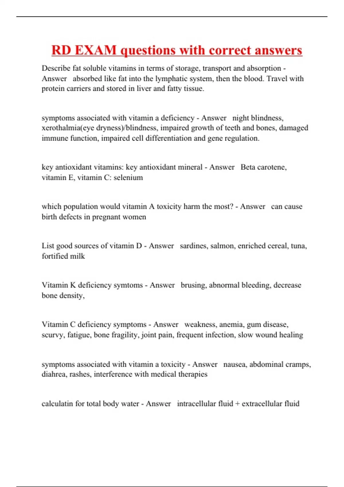 RD EXAM questions with correct answers