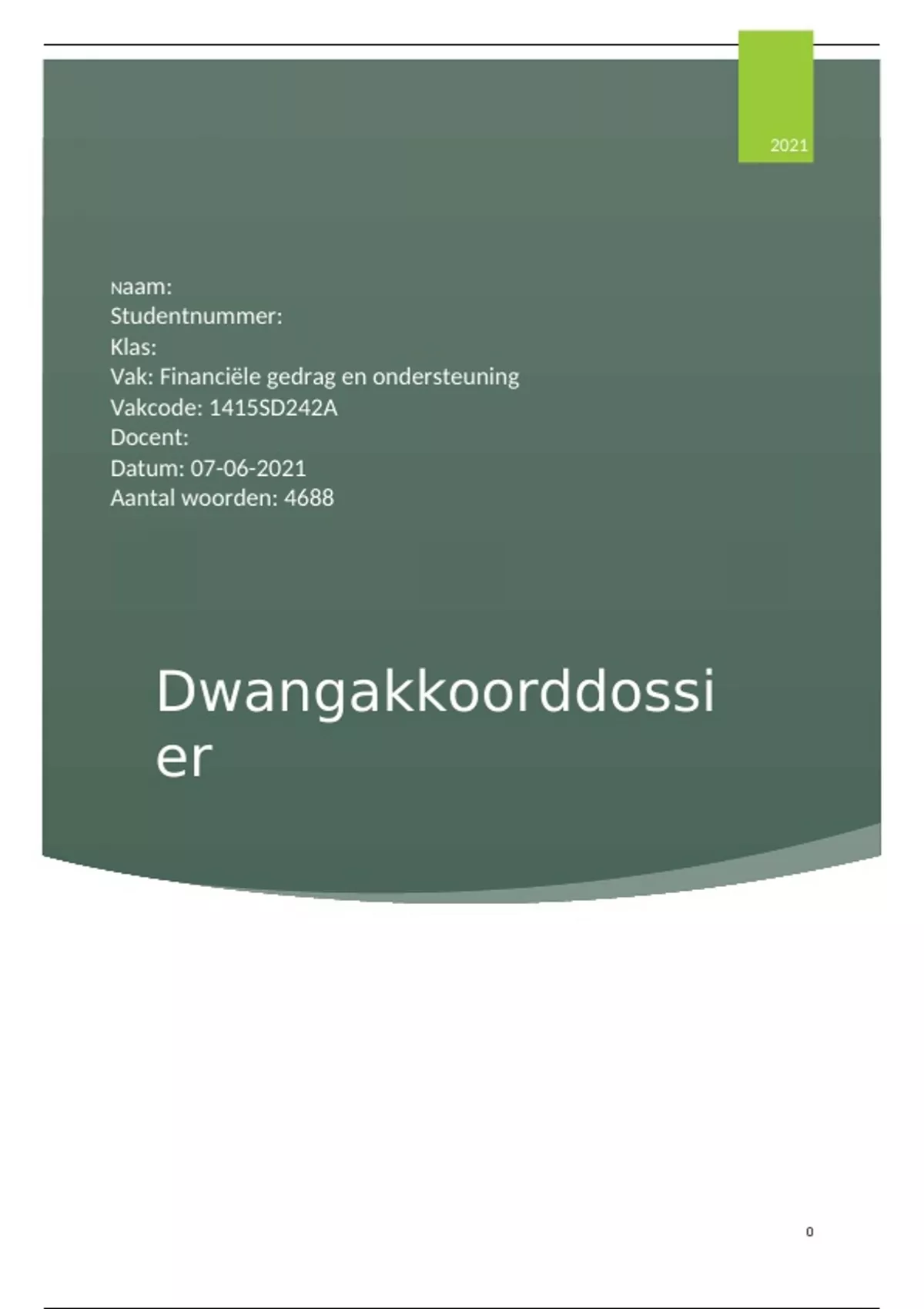 Dwangakkoorddossier '21 SJD InHolland - Cijfer 7!