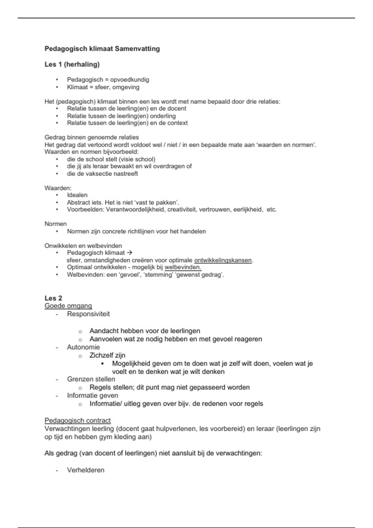 • Pedagogisch klimaat