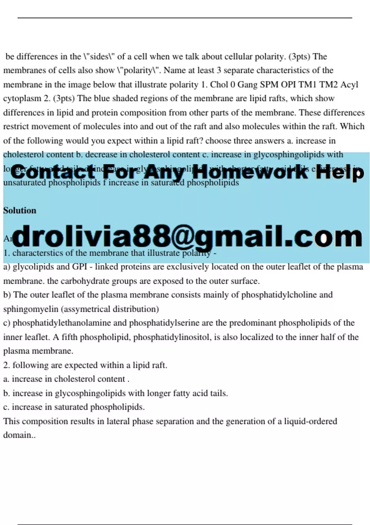 membrane in the image below that illustrate polarity 1. Chol 0 Gang SPM OPI TM1 TM2 Acyl
