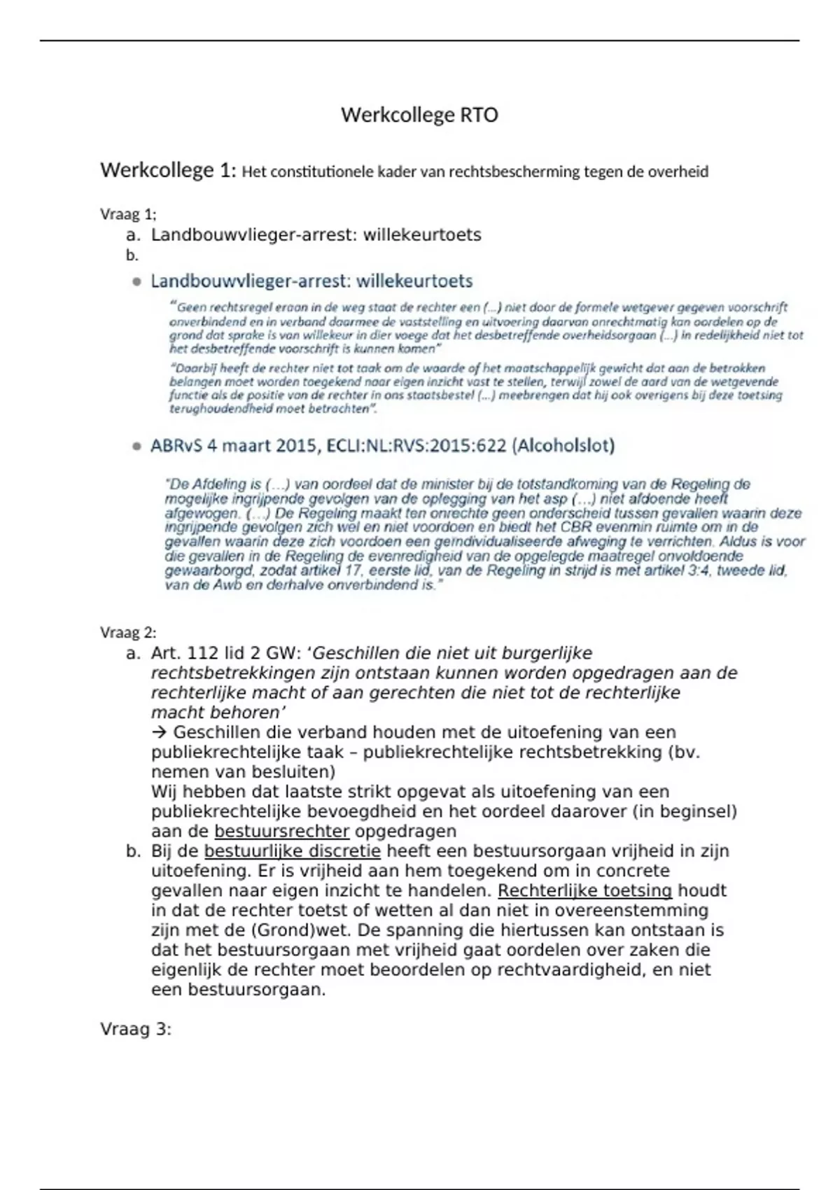 Werkcollege uitwerkingen (cijfer 7,5) Rechtsbescherming tegen de overheid (620223-B-6) 2022
