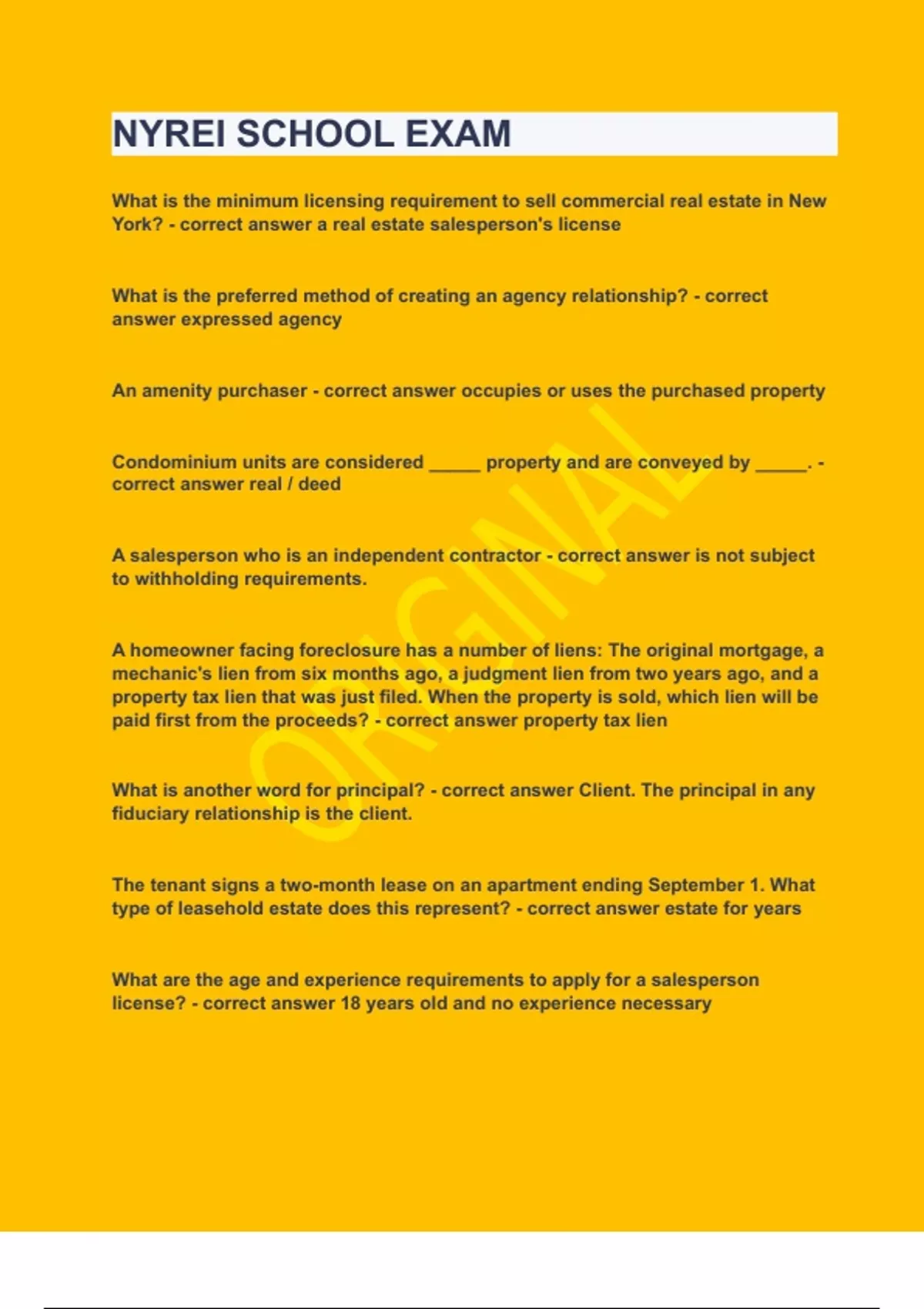 NYREI School Exam|2023 LATEST UPDATE|100% SOLVED|GUARANTEED SUCCESS