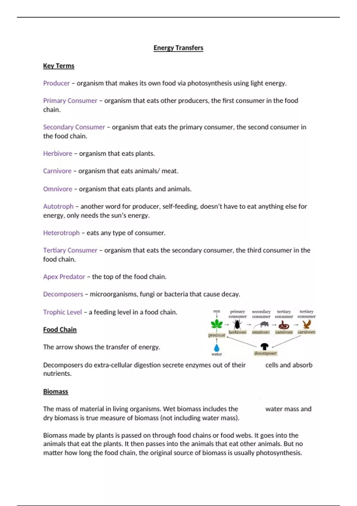 Biomass made by plants is passed on through food chains or food webs. It goes into the