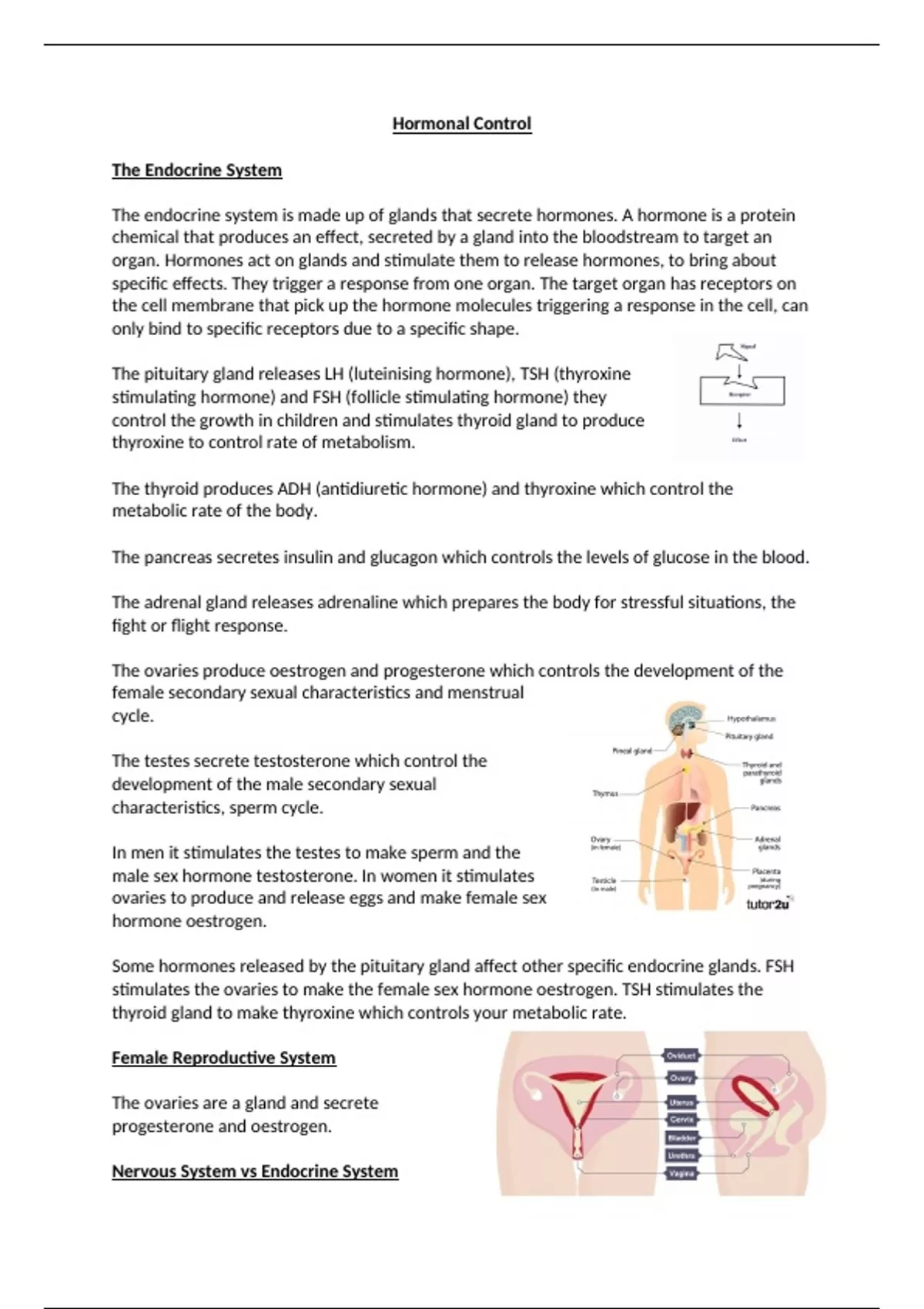 GCSE Biology Summary Notes Hormonal Control