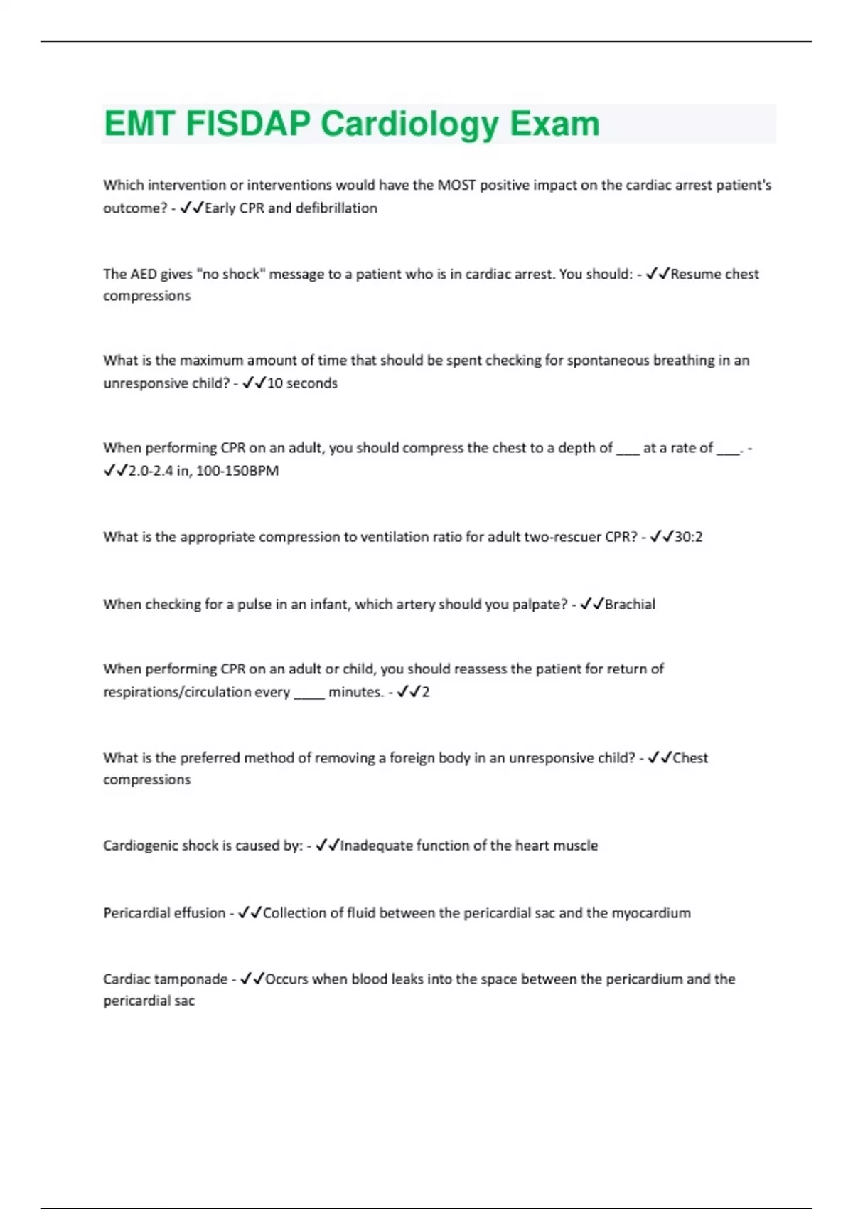 EMT FISDAP Cardiology | 78 Questions and Answers(A+ Solution guide)