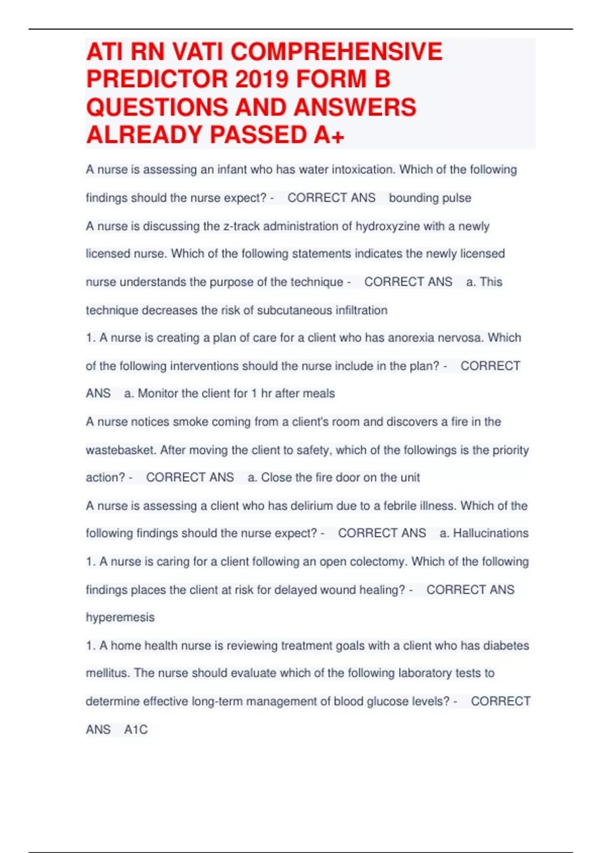 ATI RN VATI COMPREHENSIVE PREDICTOR 2019 FORM B QUESTIONS AND ANSWERS ALREADY PASSED A+