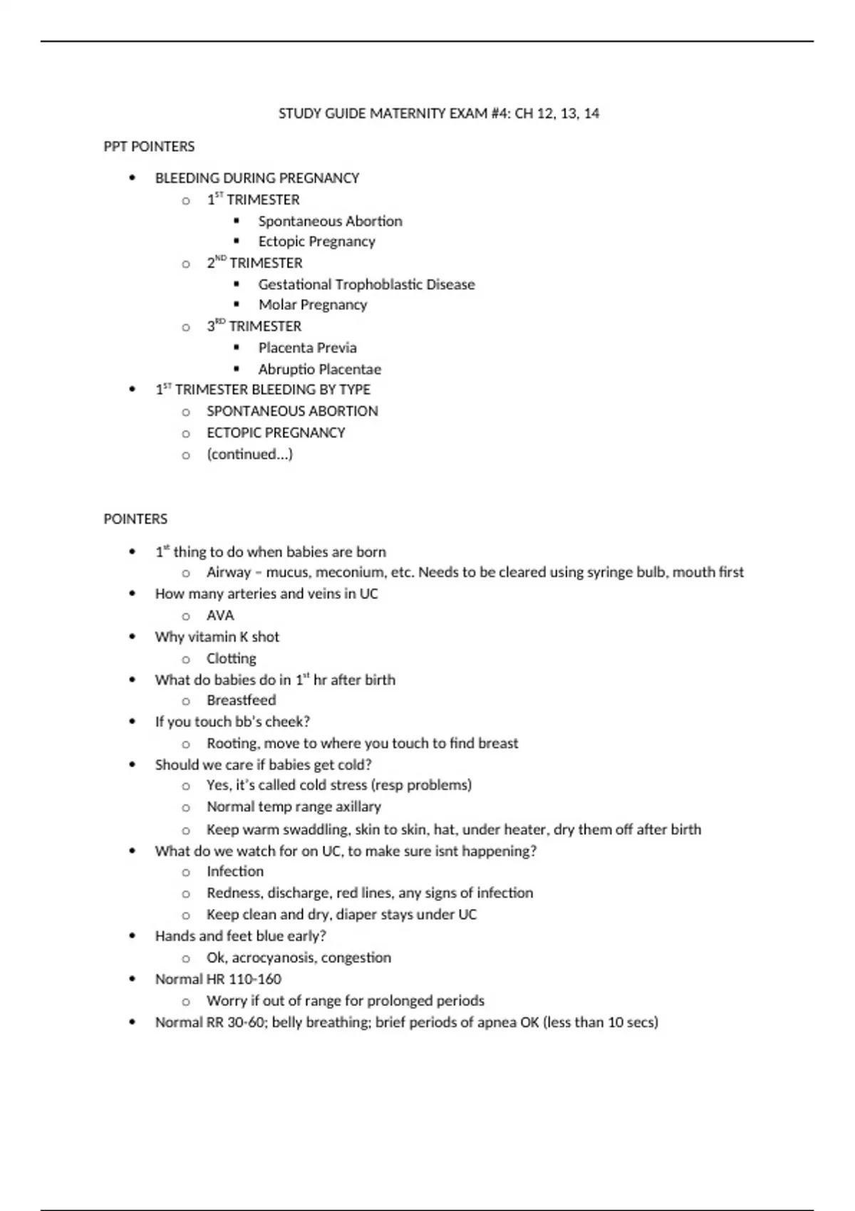 Exam Pointers and notes for VN 300 Maternity Exam 4 for unitek college lvn program
