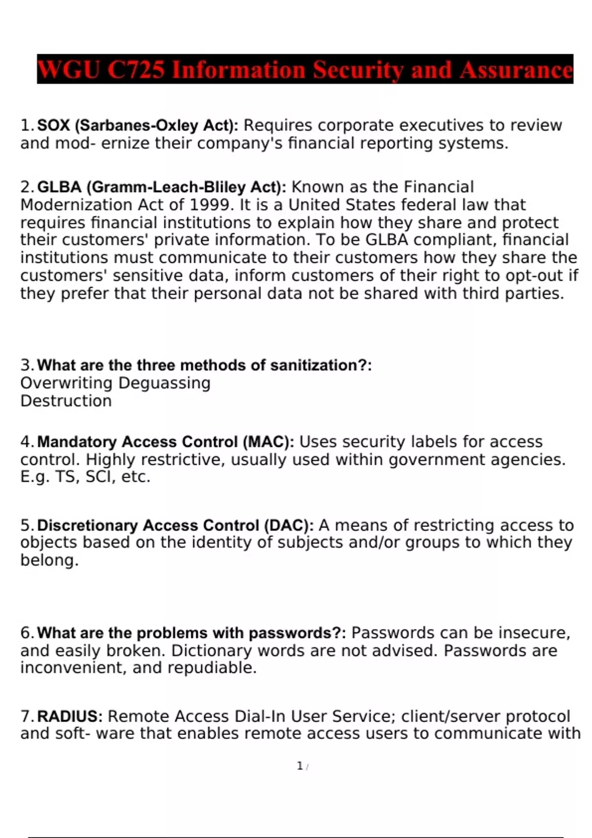 WGU C725 Information Security and Assurance Final Study 2022/2023 Verified Answers (BUNDLE PACK GUIDE)