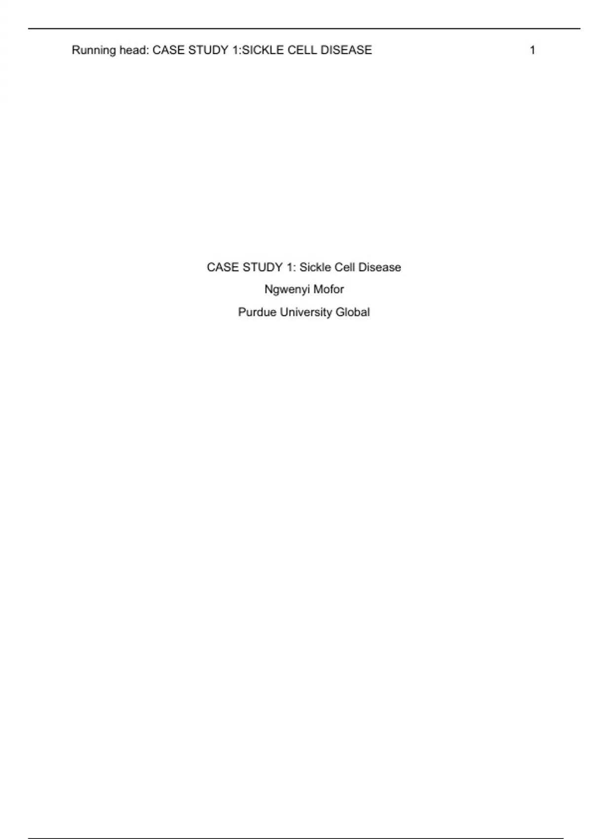 Running head: CASE STUDY 1:SICKLE CELL DISEASE 1