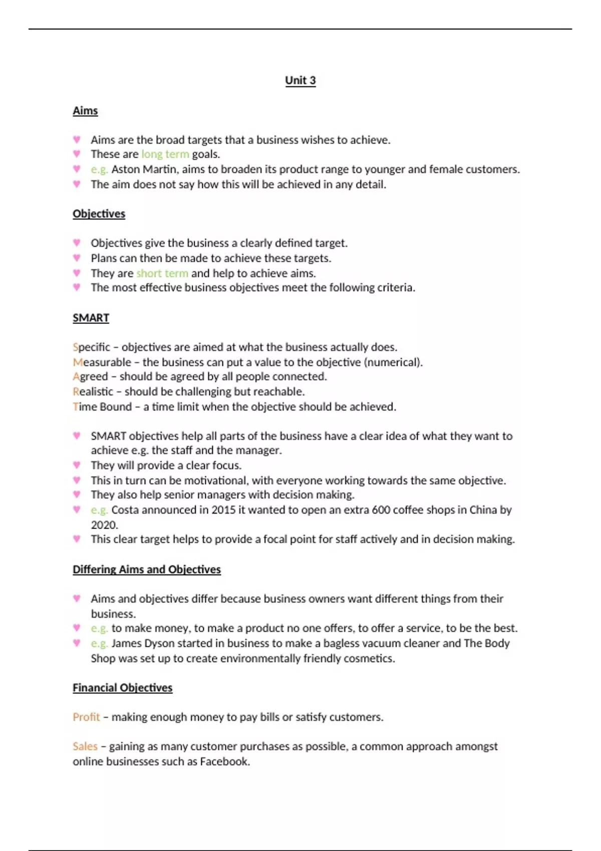  SMART objectives help all parts of the business have a clear idea of what they want to