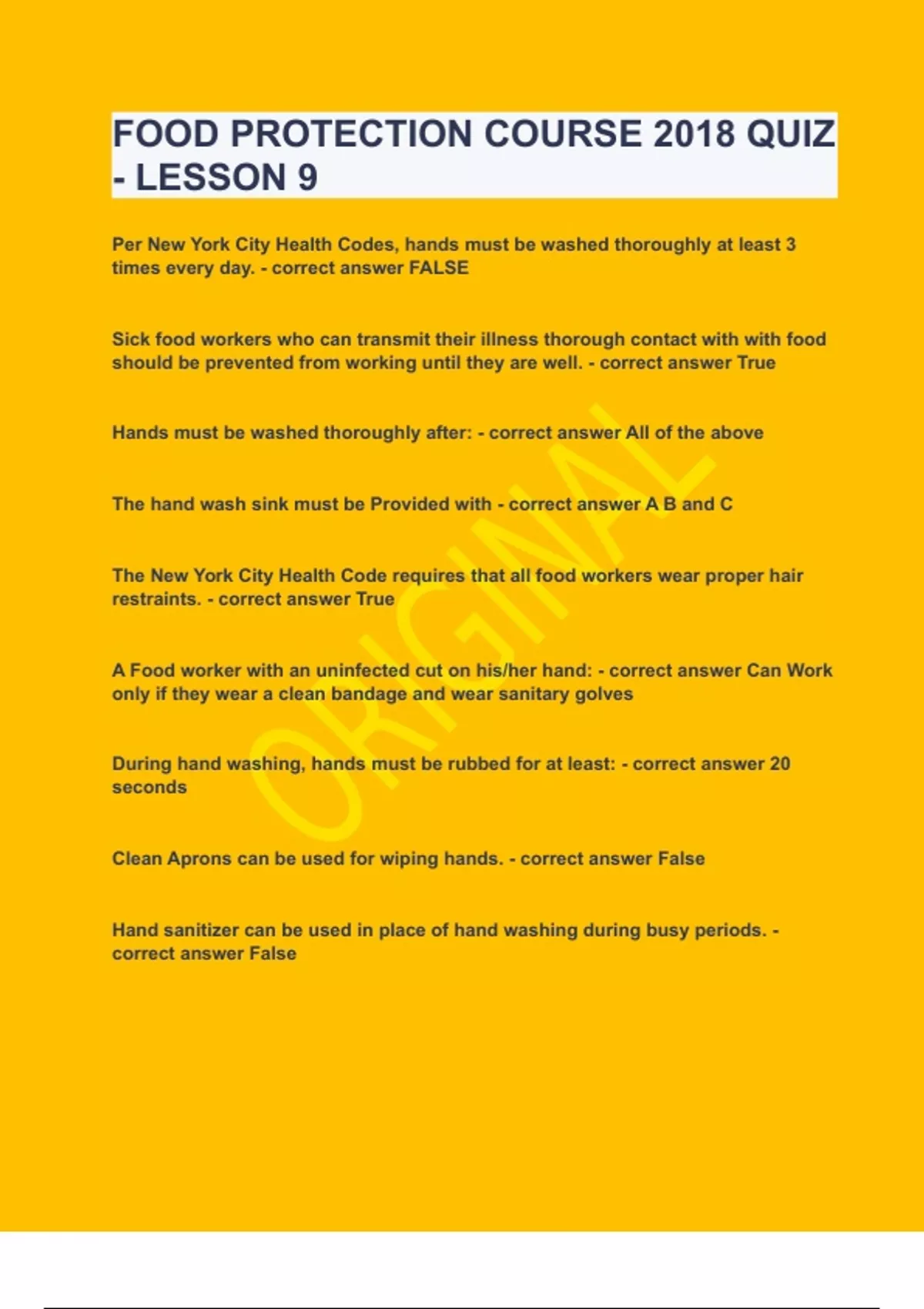 Per New York City Health Codes, hands must be washed thoroughly at least 3 times every day. - correct answer FALSE