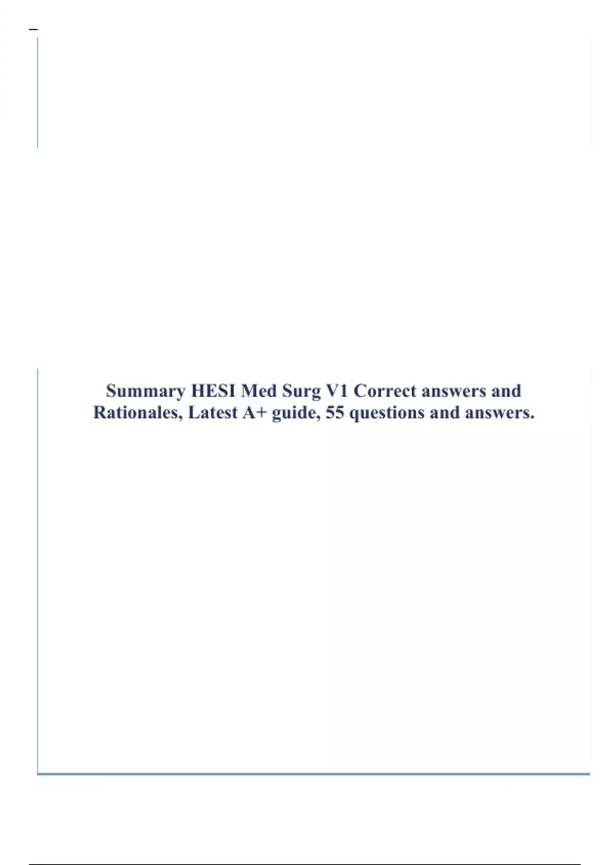 Summary HESI Med Surg V1 Correct answers and Rationales, Latest A+ guide, 55 questions and answers.