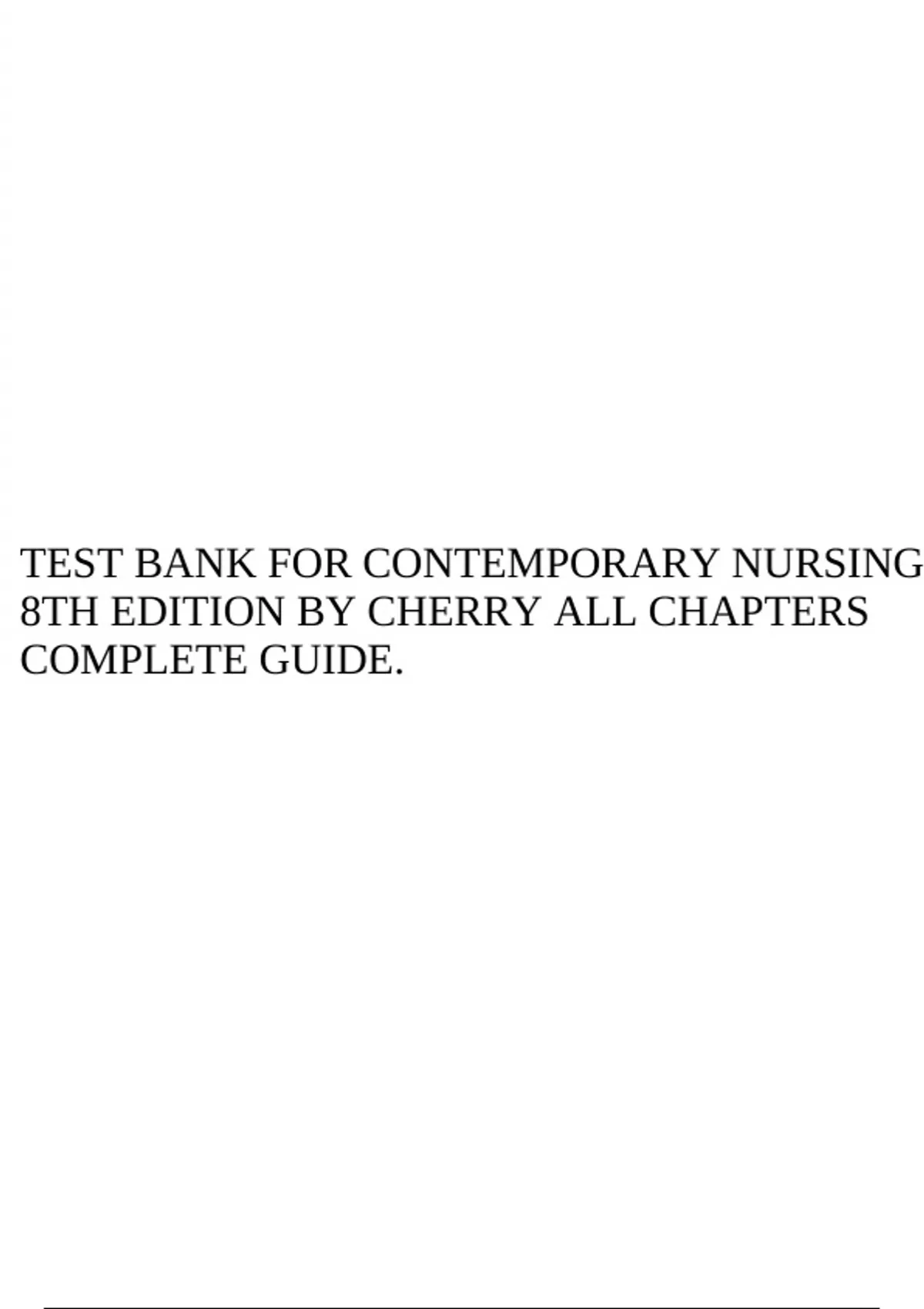 TEST BANK FOR CONTEMPORARY NURSING 8TH EDITION BY CHERRY ALL CHAPTERS COMPLETE GUIDE.