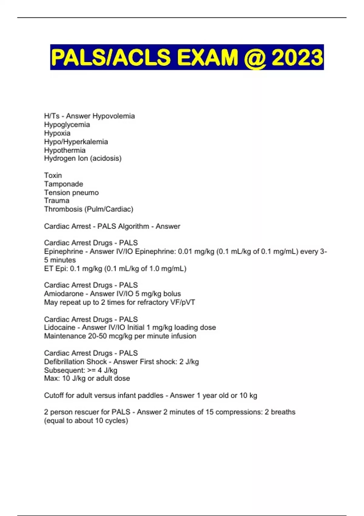 PALS PACKAGED EXAMS WITH COMPLETE SOLUTIONS