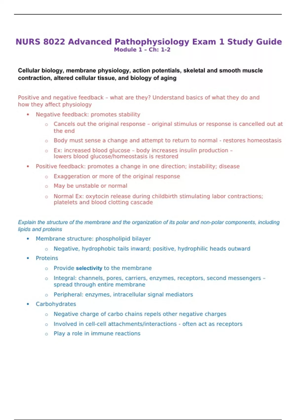 NURS 8022 Advanced Pathophysiology Exam 1_6 Study Guide {Package Deal}