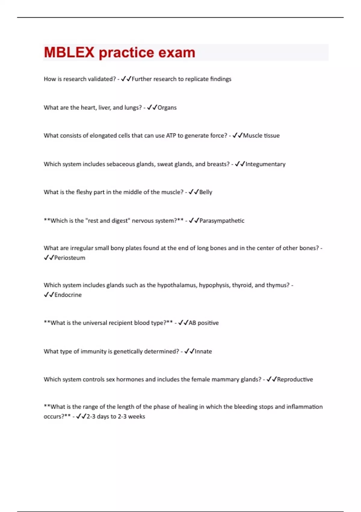 MBLEX | Questions and Answers with complete solution