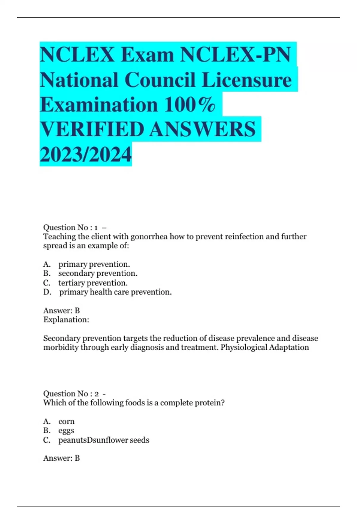 NCLEX Exam NCLEX-PN National Council Licensure Examination 100% VERIFIED ANSWERS 2023/2024