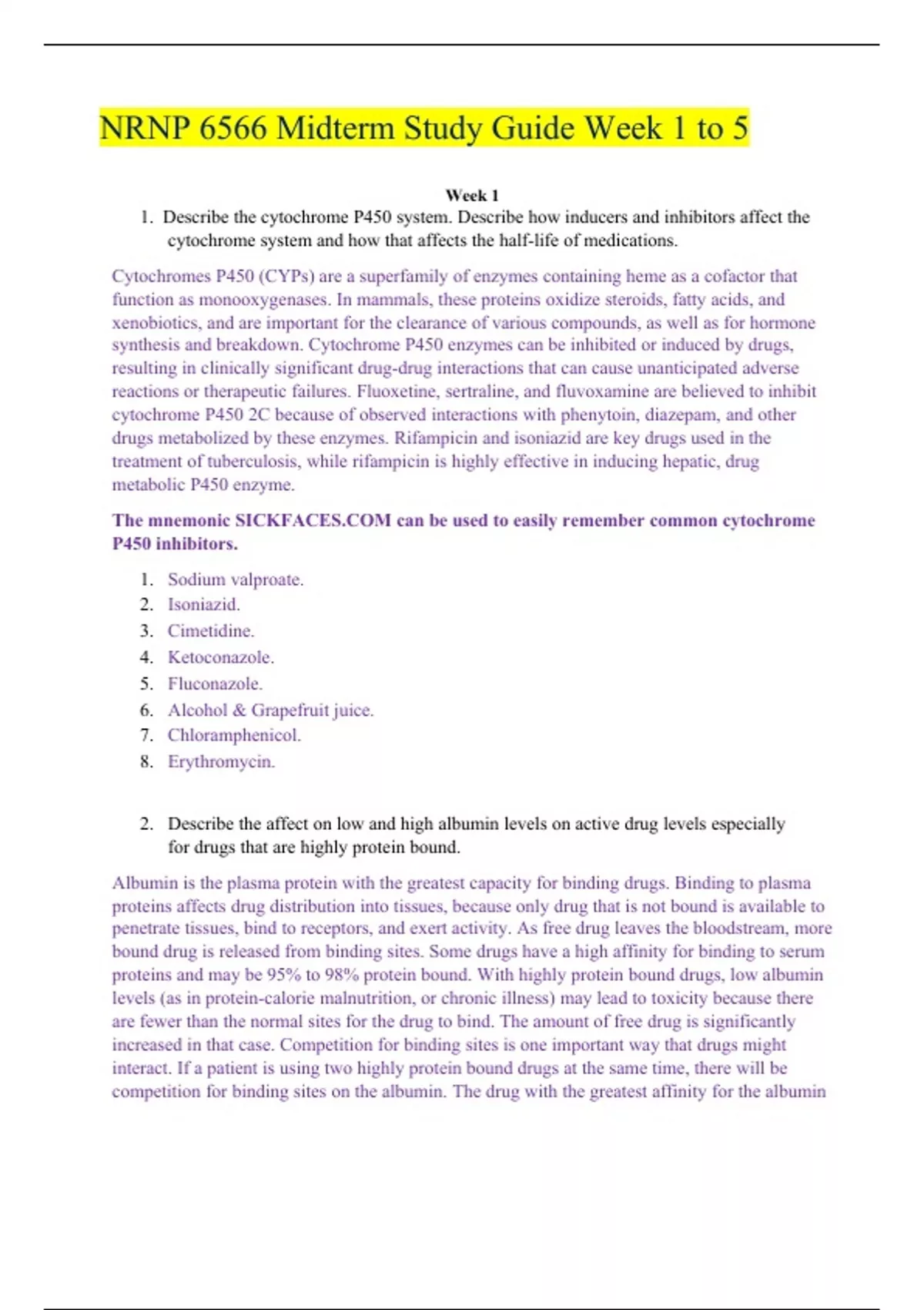 NRNP 6566 Midterm Study Guide Week 1 to 5