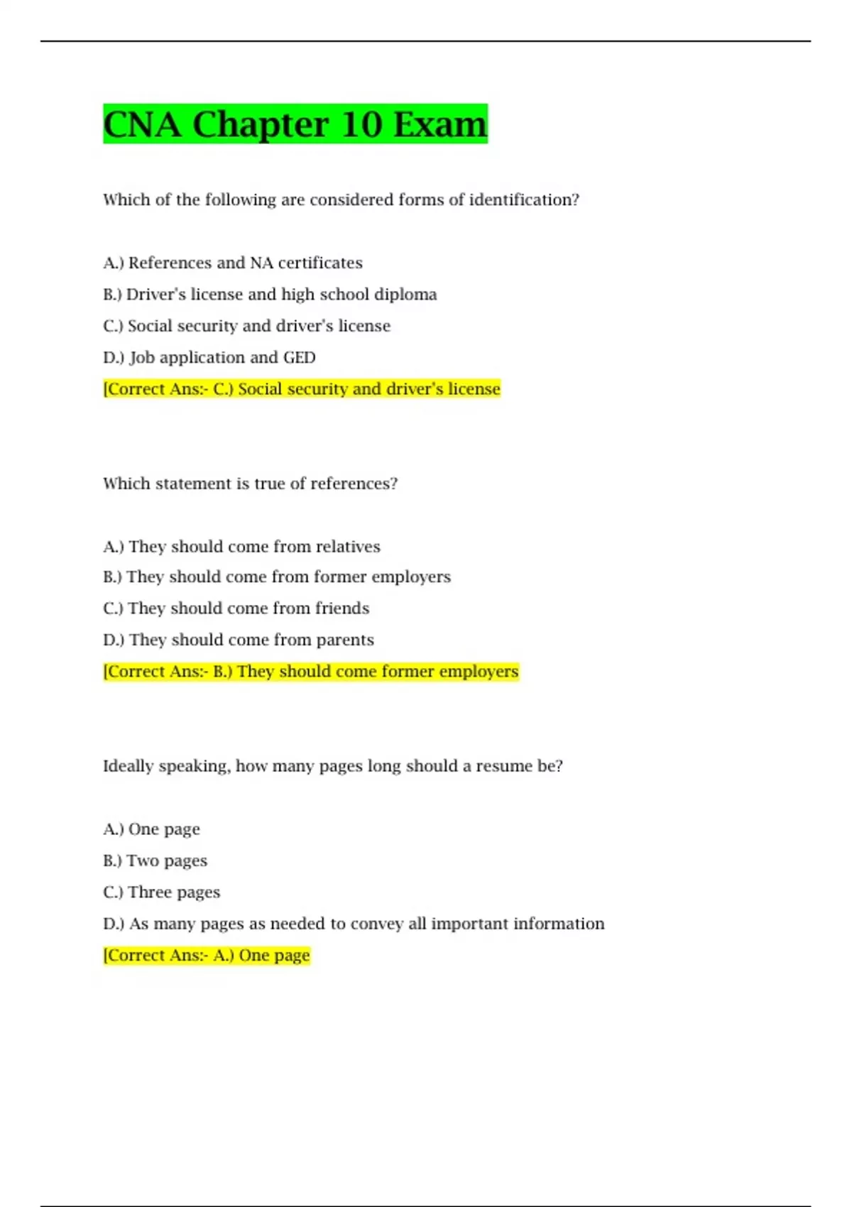 CNA Chapter 10 Exam Questions and Answer| Multiple Choice| Verified Answers,CNA Chapter 10 Exam Questions and Answer| Multiple Choice| Verified Answers,CNA Chapter 10 Exam Questions and Answer| Multiple Choice| Verified Answers