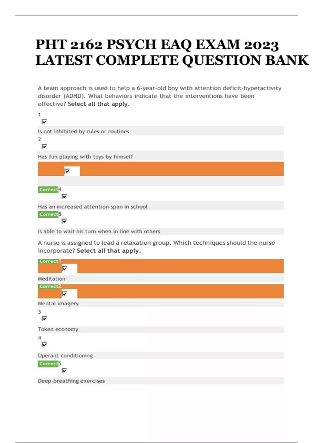 PHT 2162 PSYCH EAQ EXAM 2023 LATEST COMPLETE QUESTION BANK