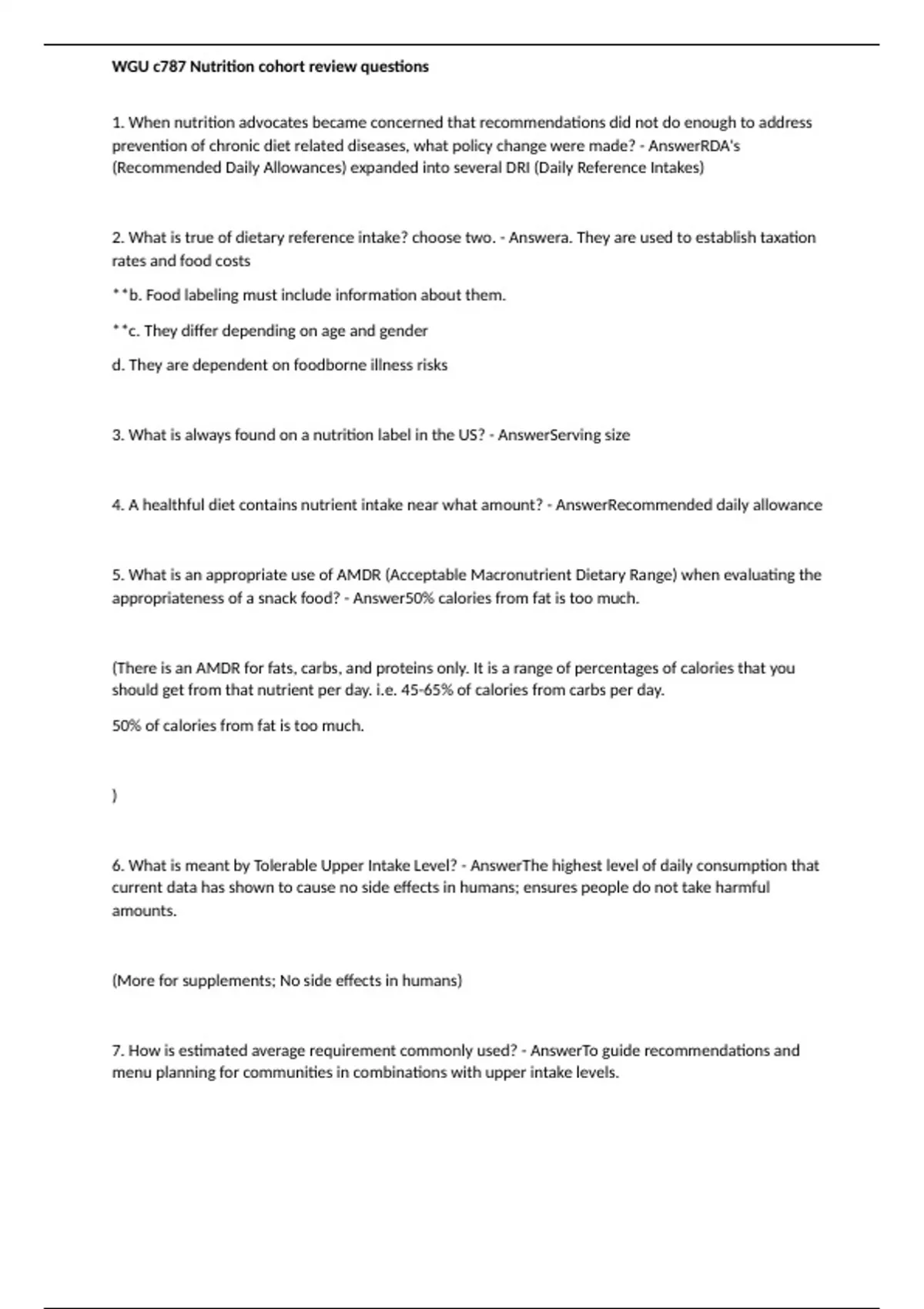 WGU c787 Nutrition Cohort Review Questions and Answers 100% Verified 2023 Update.