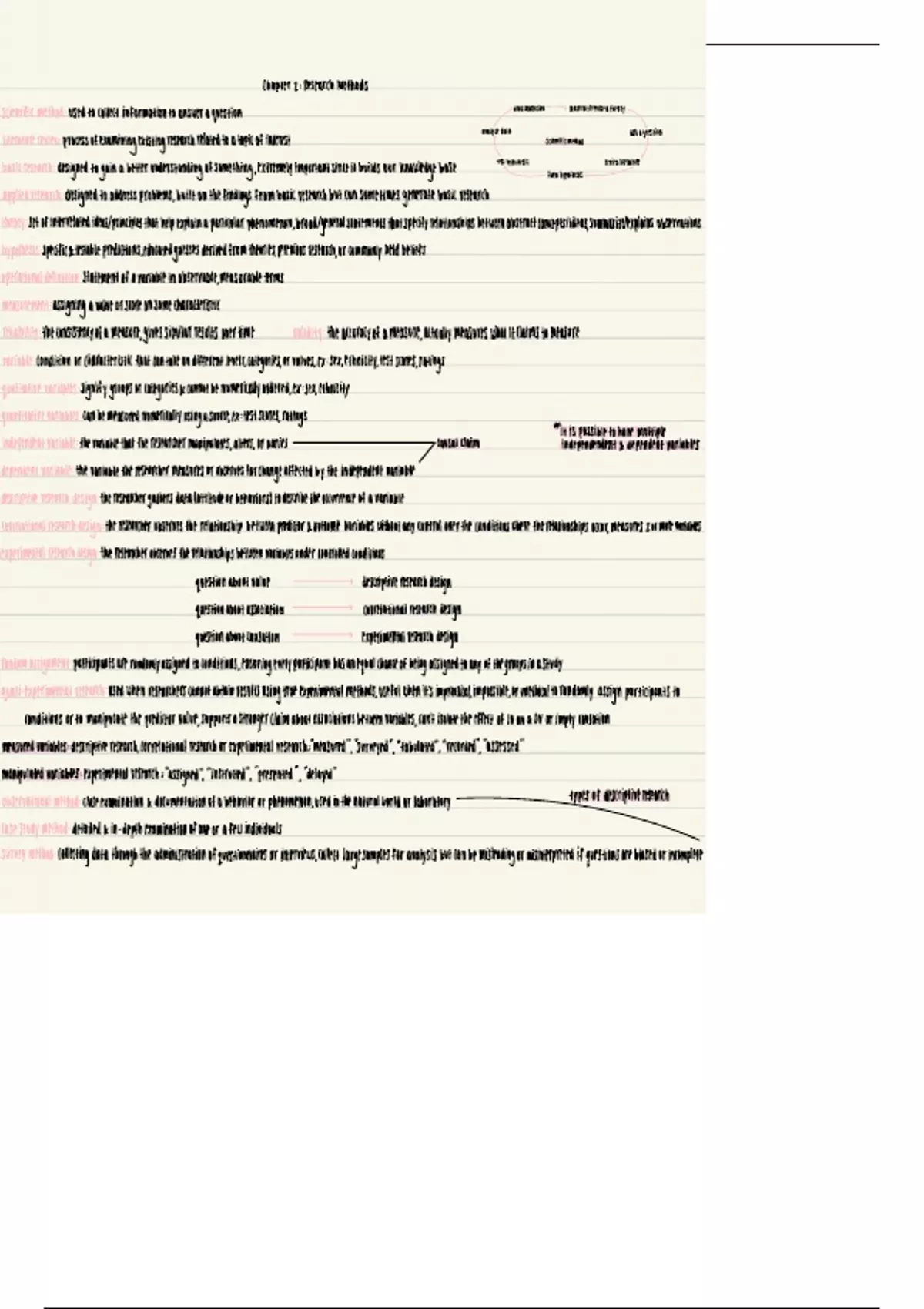 Definitions and explain actions about types of research, variables, methods