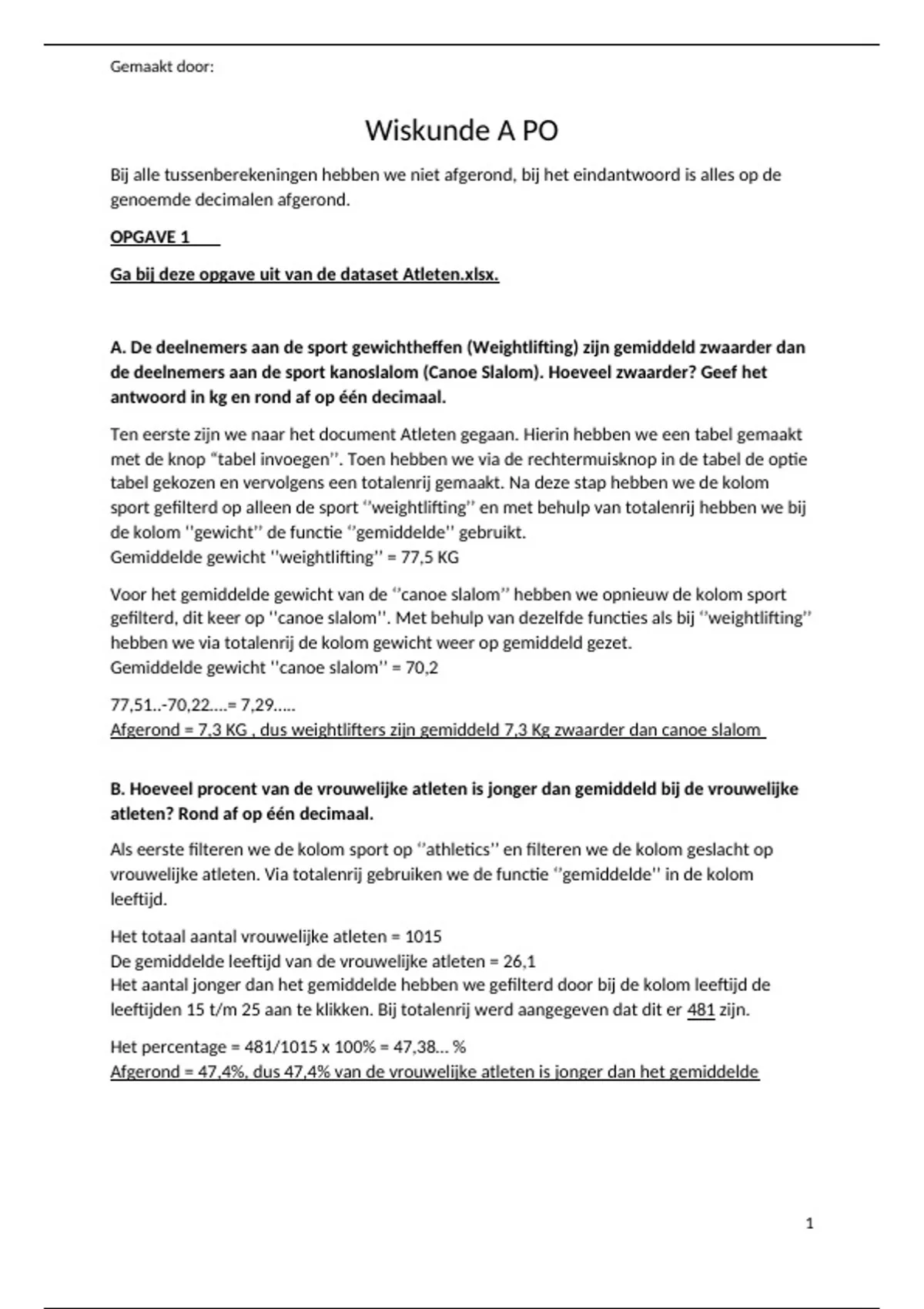 Ga bij deze opgave uit van de dataset Atleten.xlsx.