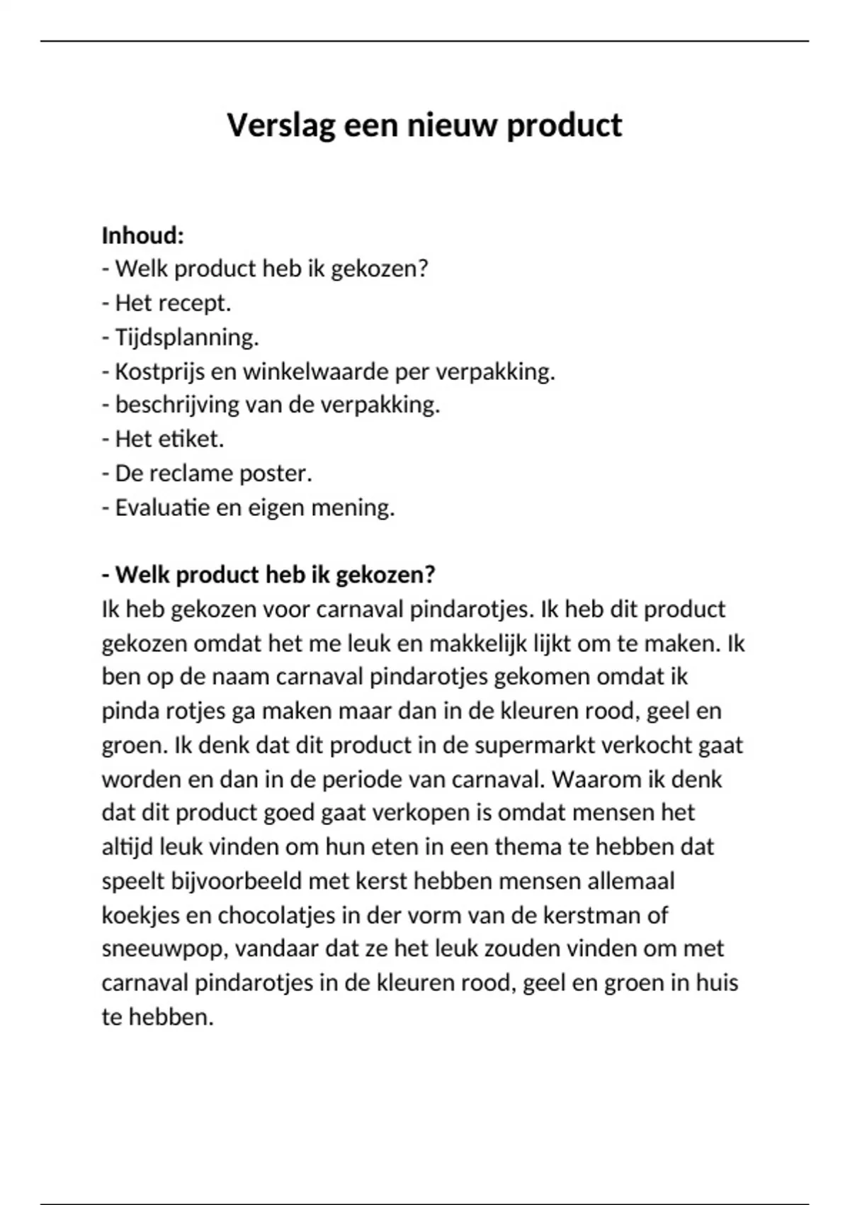 Verslag een nieuw product