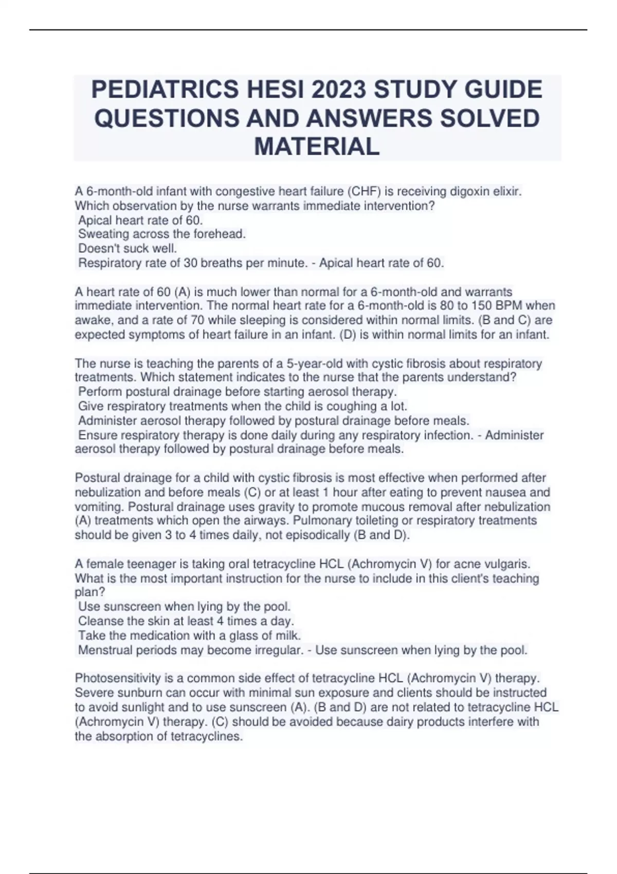 Pediatrics HESI 2023 Study Guide Questions and Answers Solved Material