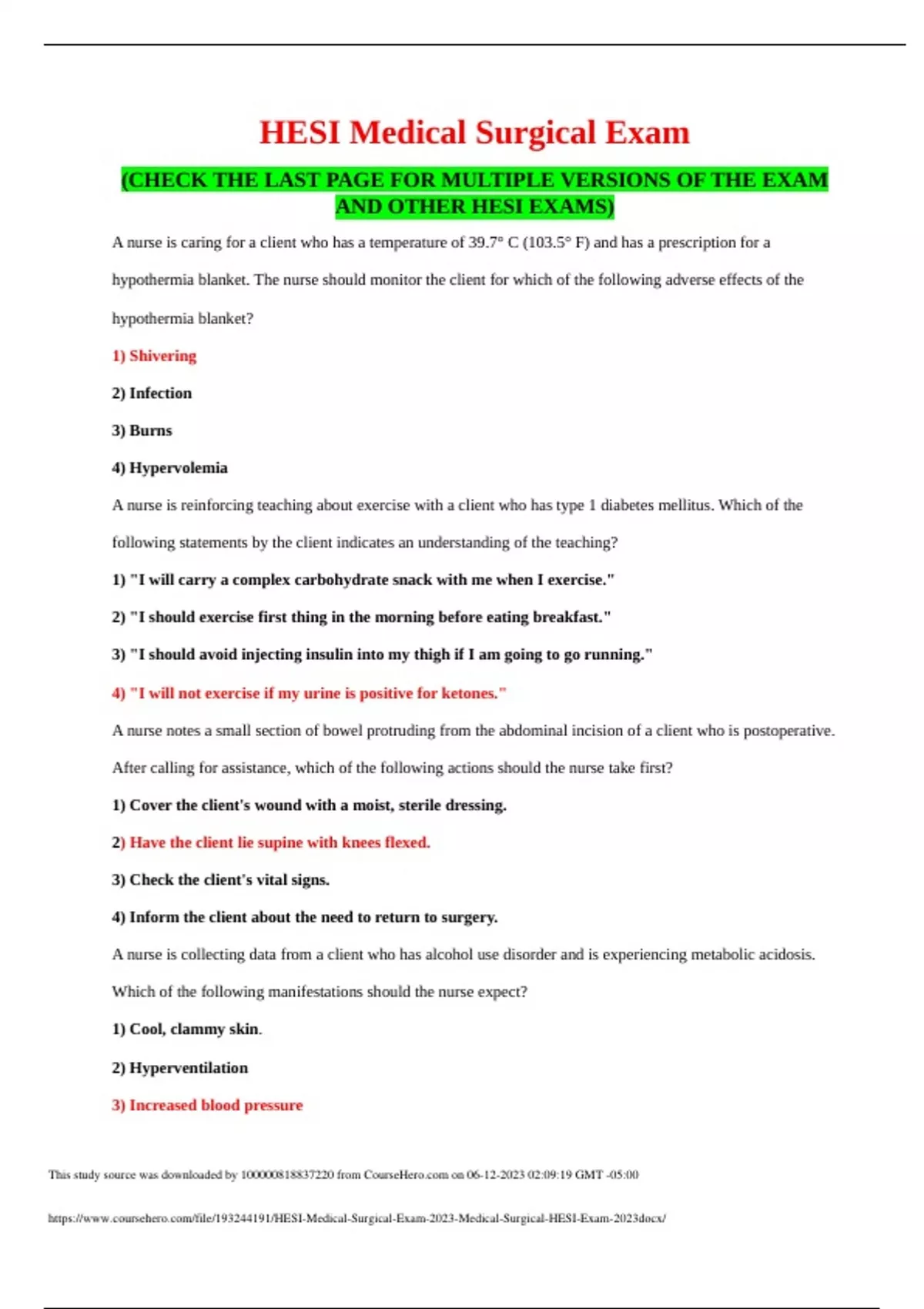 latest and well solved HESI Medical Surgical Exam 2023