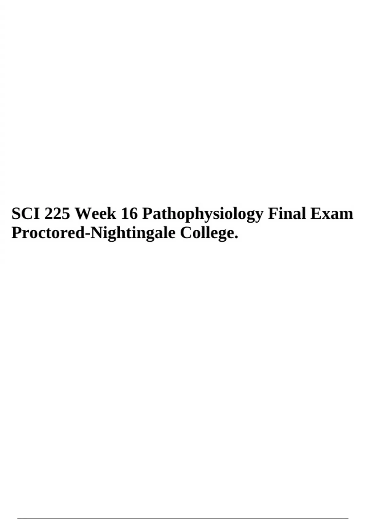 SCI 225 Week 16 Pathophysiology Final Exam Proctored-Nightingale College.