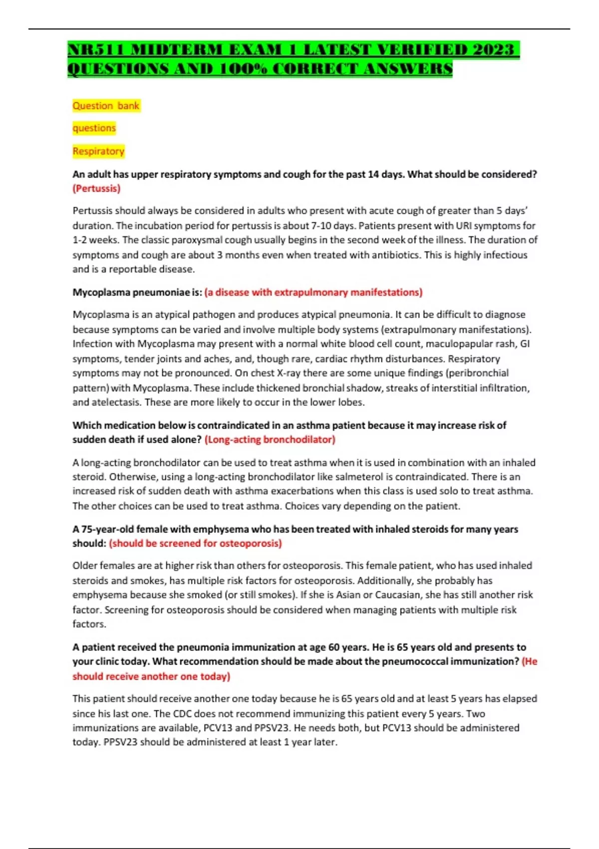 NR511 MIDTERM EXAM 1 LATEST VERIFIED 2023 QUESTIONS AND 1OO% CORRECT ANSWERS