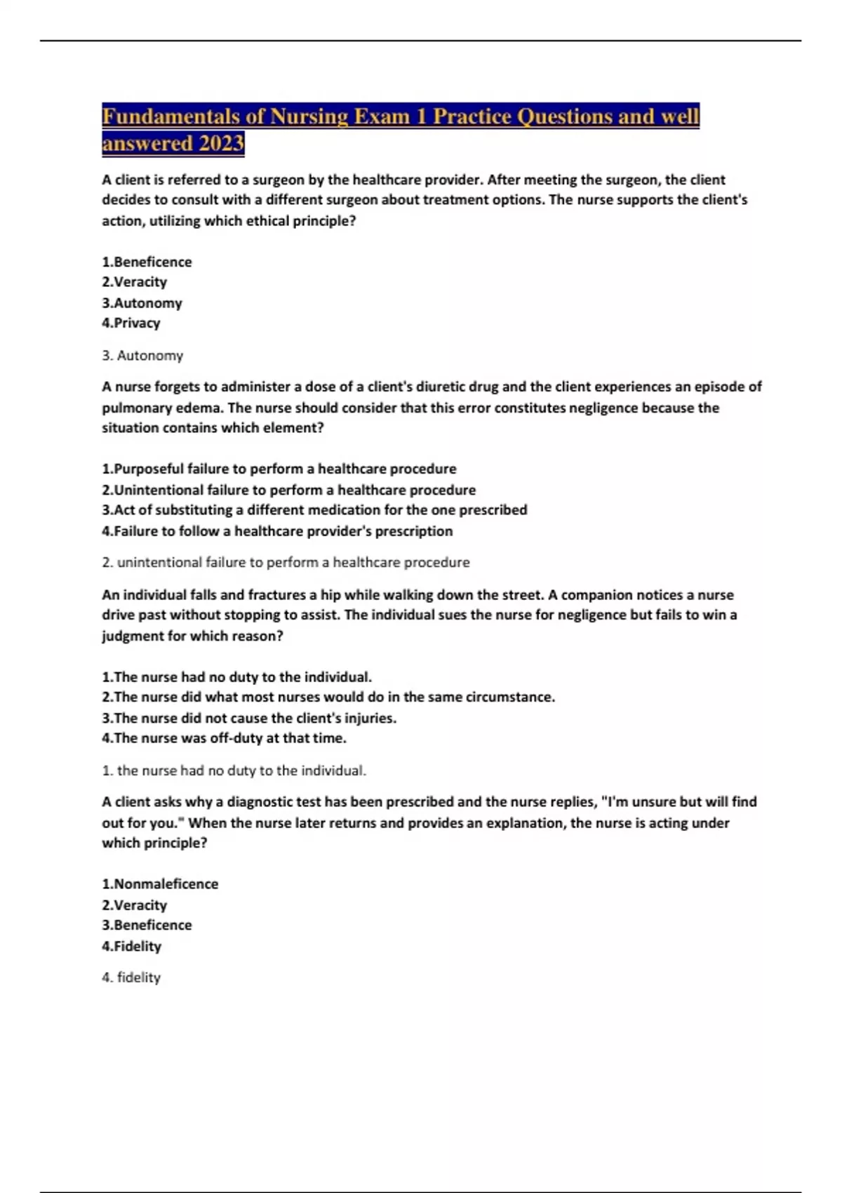 Fundamentals of Nursing Exam 1 Practice Questions and well answered 2023