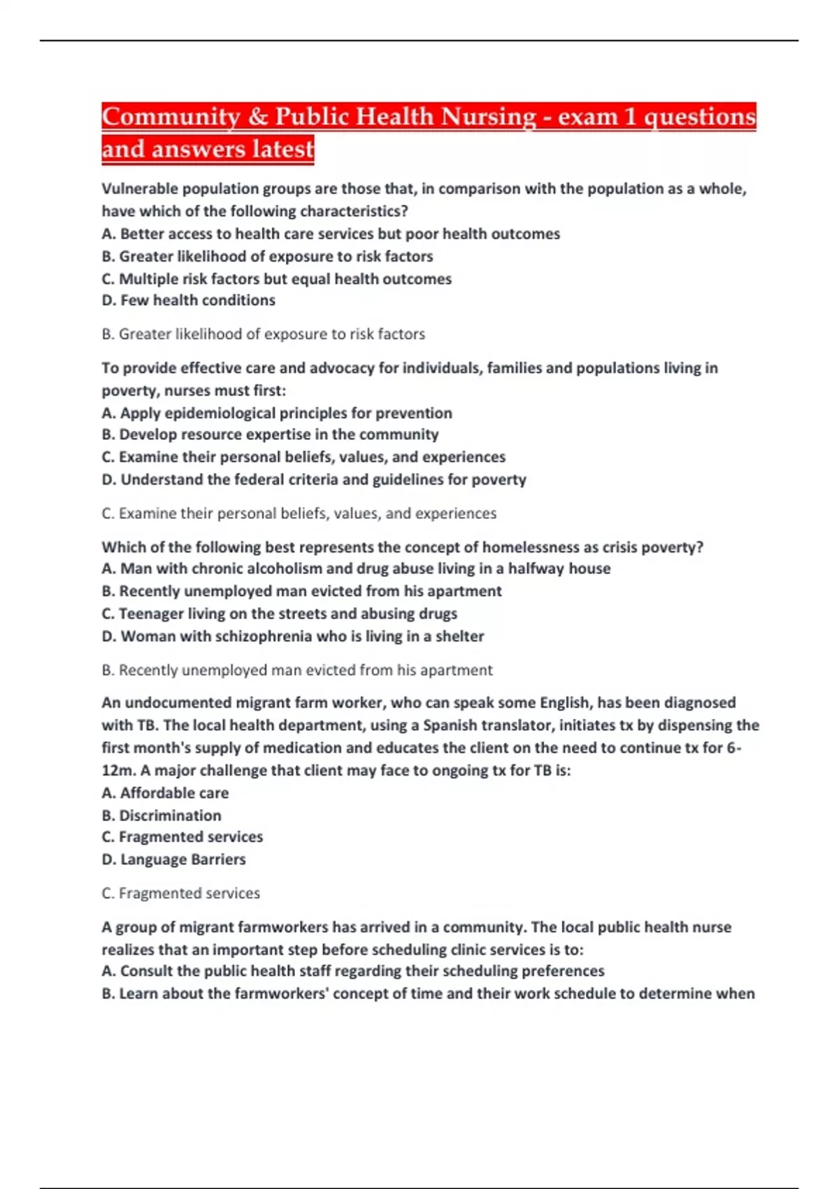 Community & Public Health Nursing - exam 1 questions and answers latest