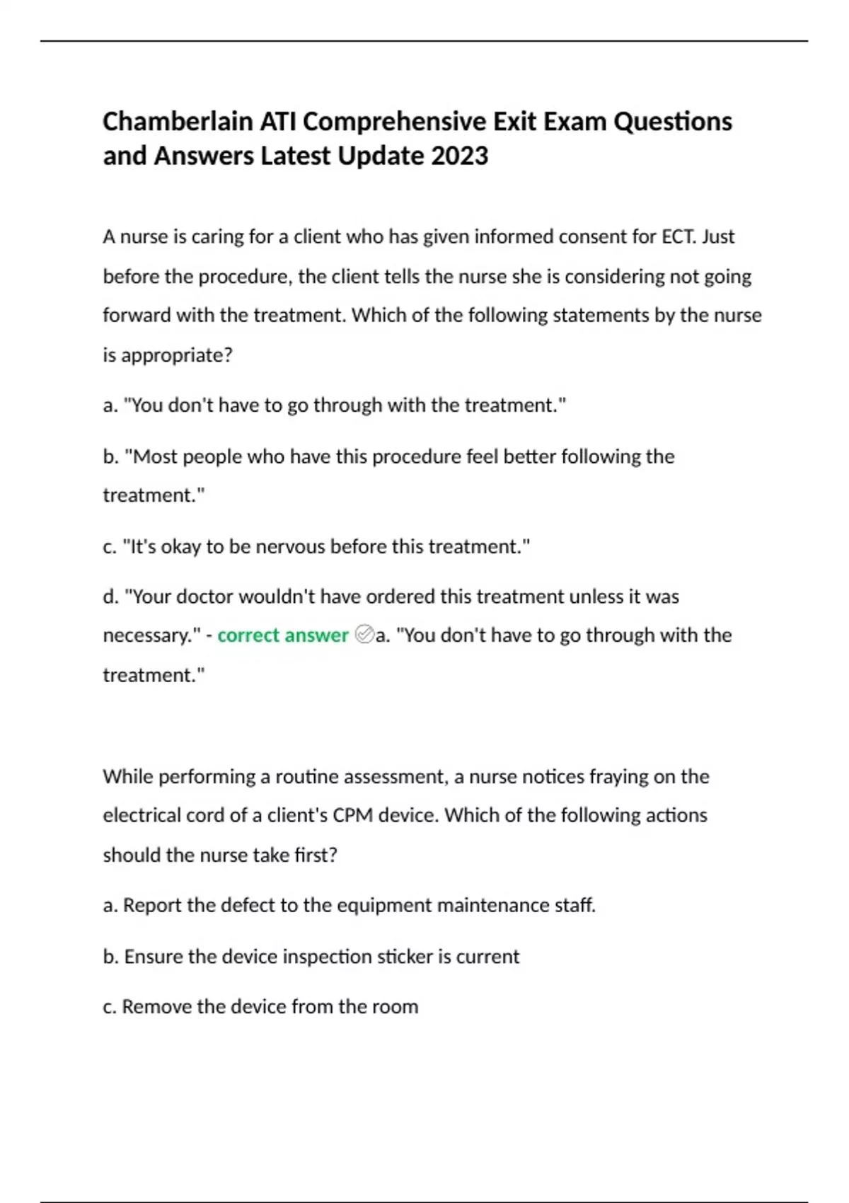 Chamberlain ATI Comprehensive Exit Exam Questions and Answers Latest Update 2023