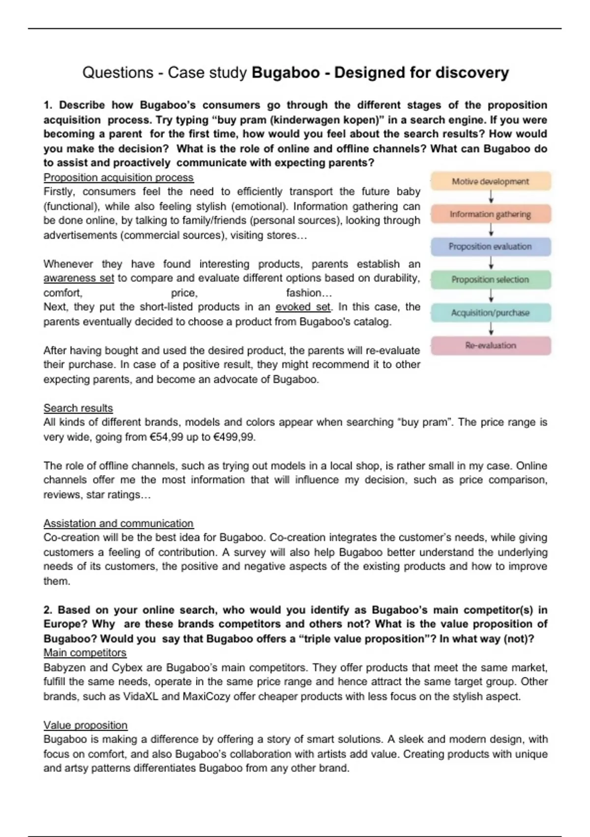 1. Describe how Bugaboo’s consumers go through the different stages of the proposition