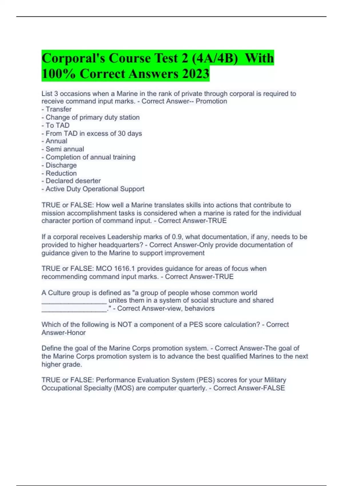 corporals course test 2 4a4b with 100 correc