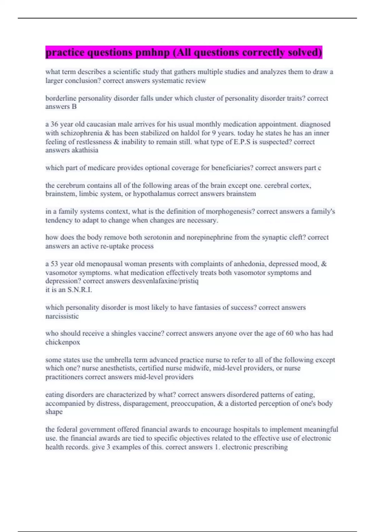 practice questions pmhnp (All questions correctly solved)